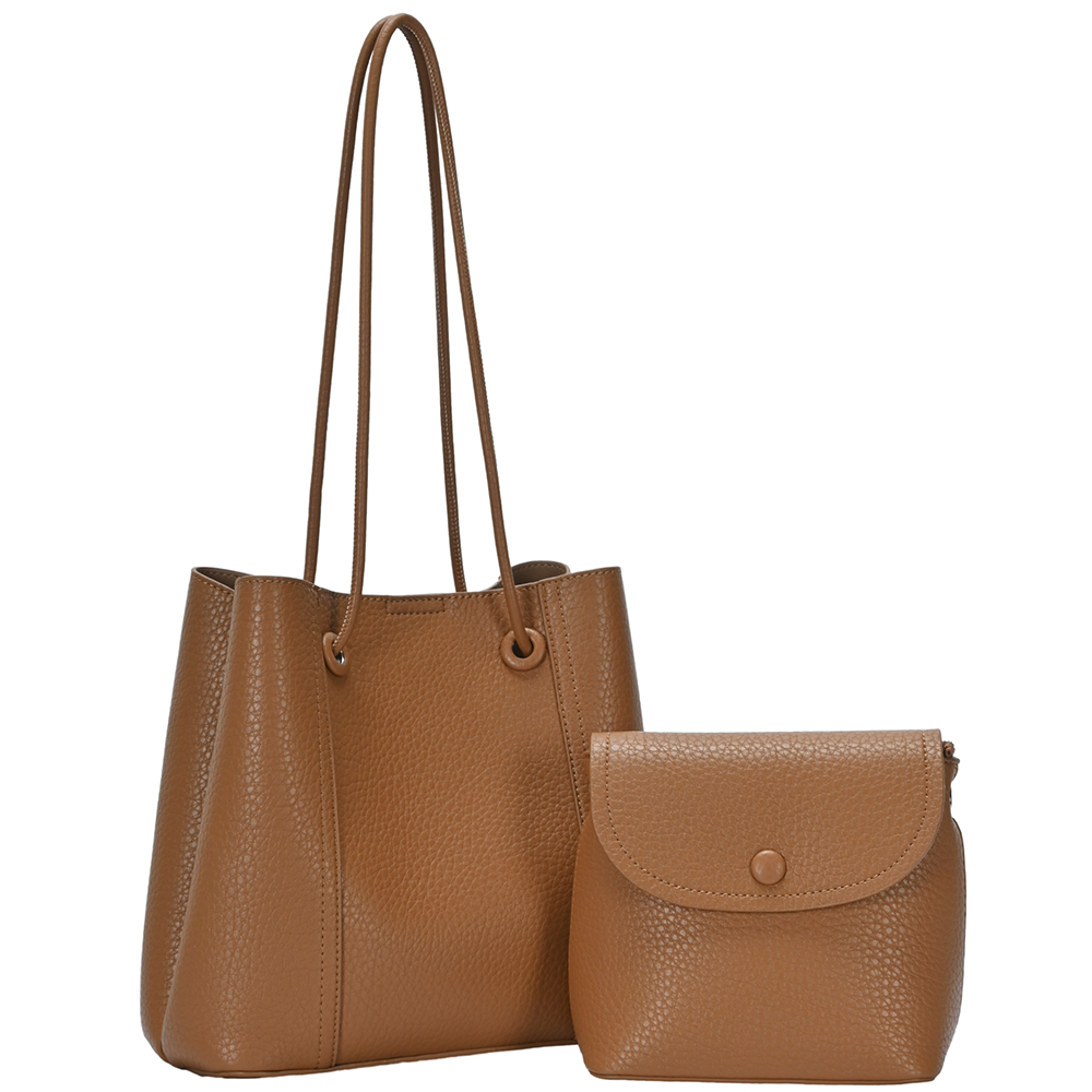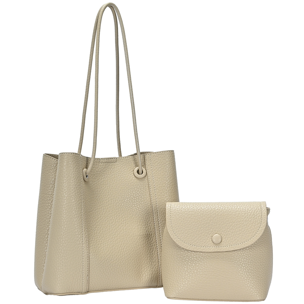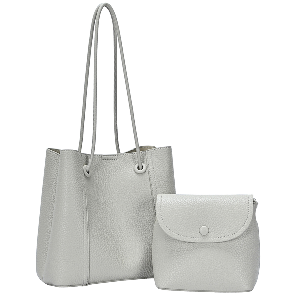 2IN1 SMOOTH PLAIN SHOULDER TOTE BAG W CROSSBODY SET