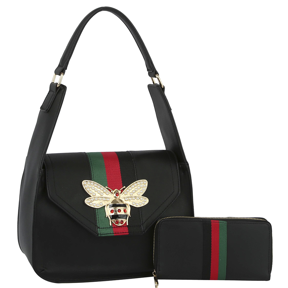 2IN1 STRIPED BUG SHOULDER BAG W MATCHING WALLET SET