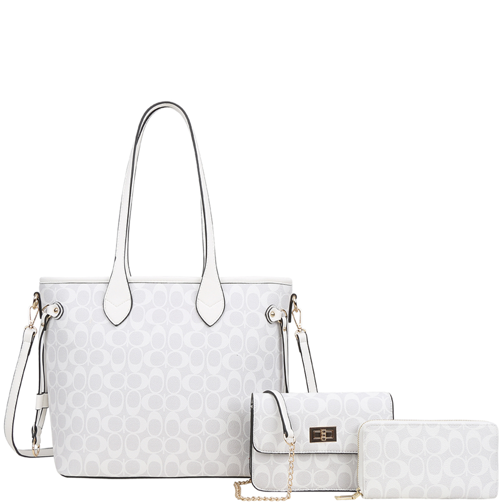 3IN1 OVAL PATTERN PRINT SHOULDER TOTE BAG W CROSSBODY AND WALLET SET