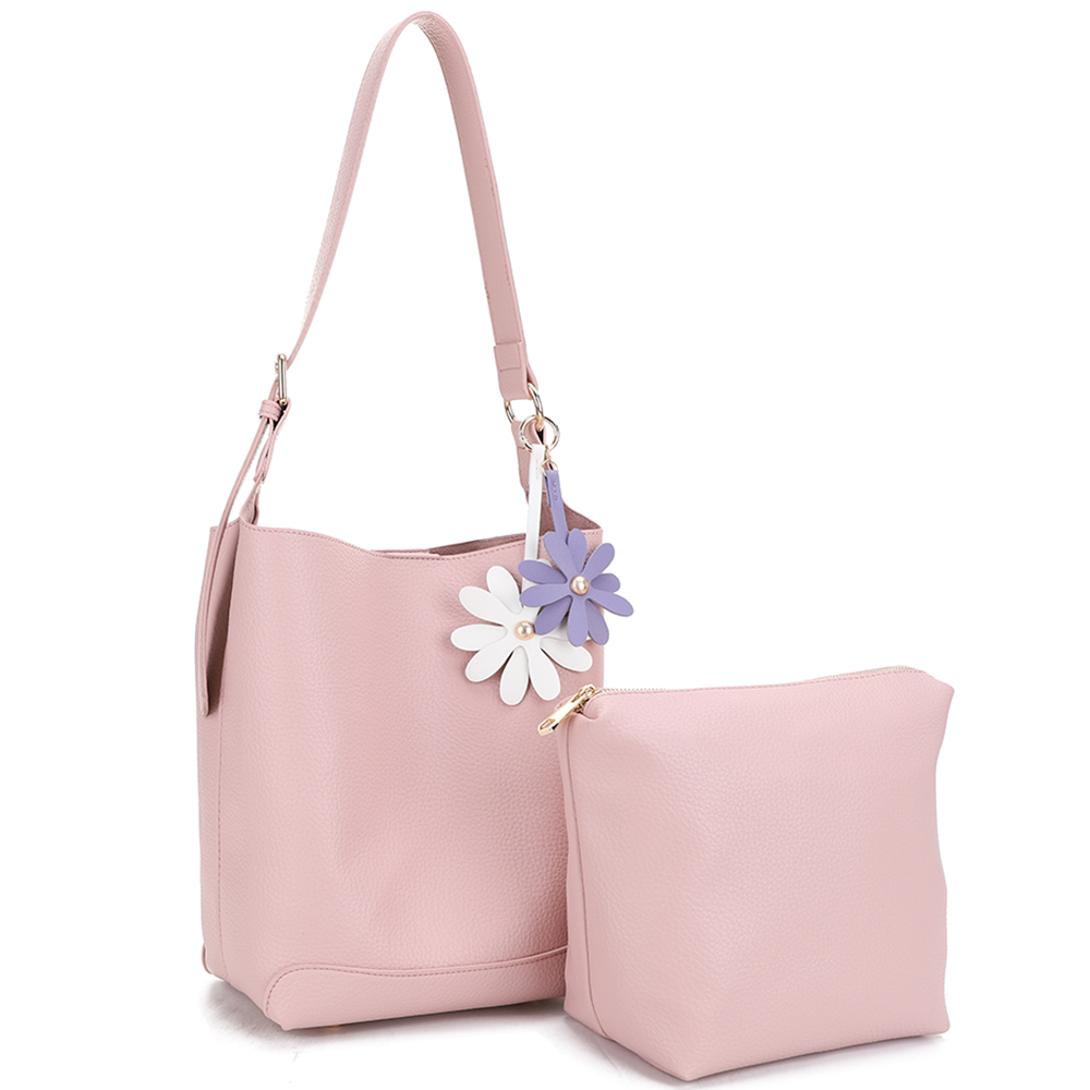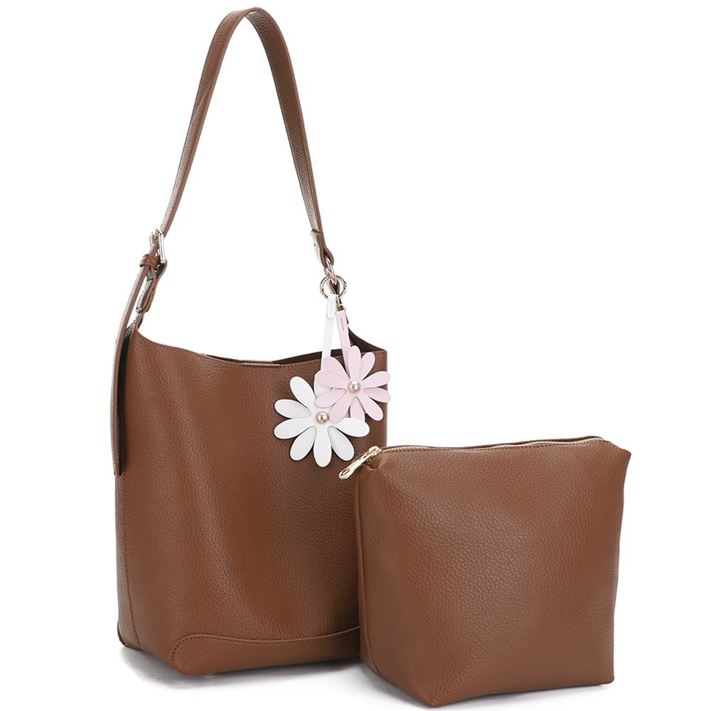 2IN1 SMOOTH SHOULDER HOBO BAG W POUCH SET