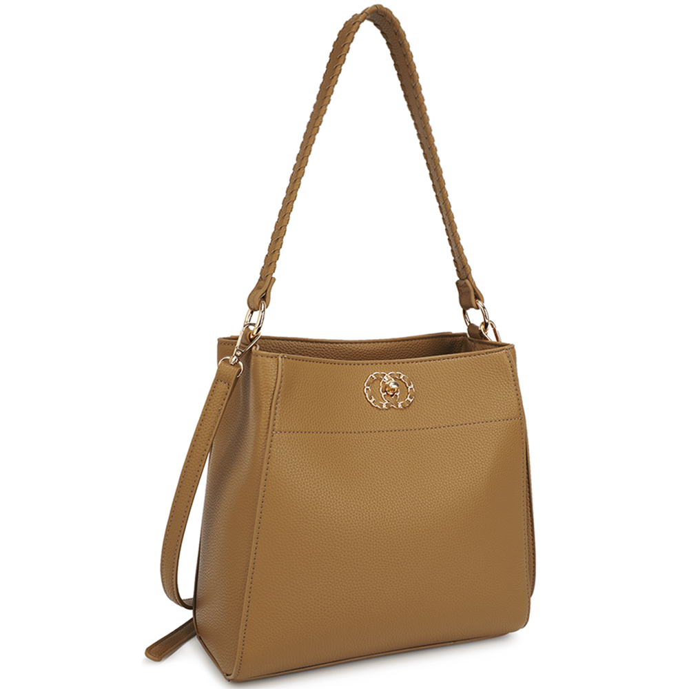 TEXTURED TWIST LOCK SHOULDER BAG