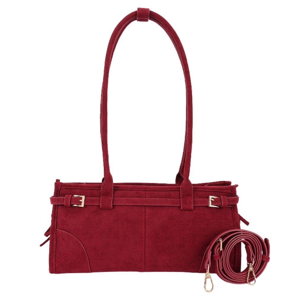 CHAIN DETAIL SUEDE METAL BUCKLE SHOULDER BAG
