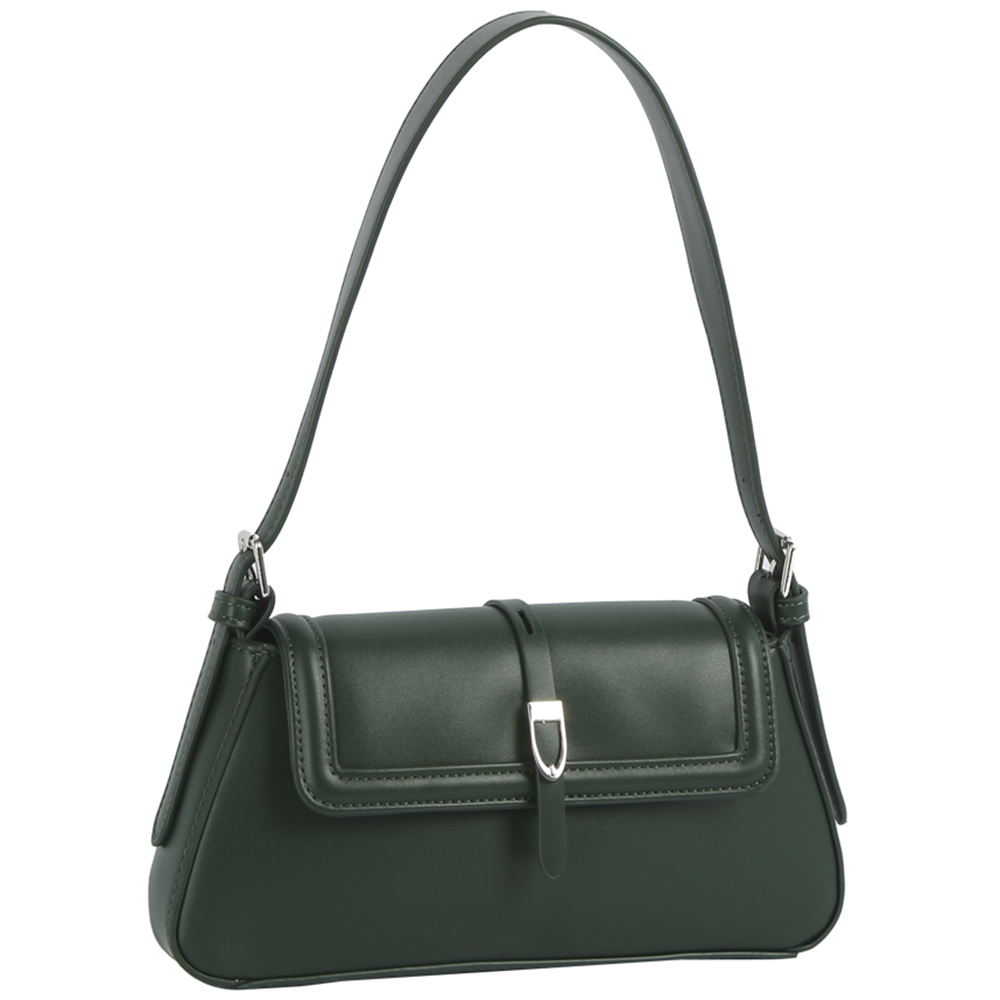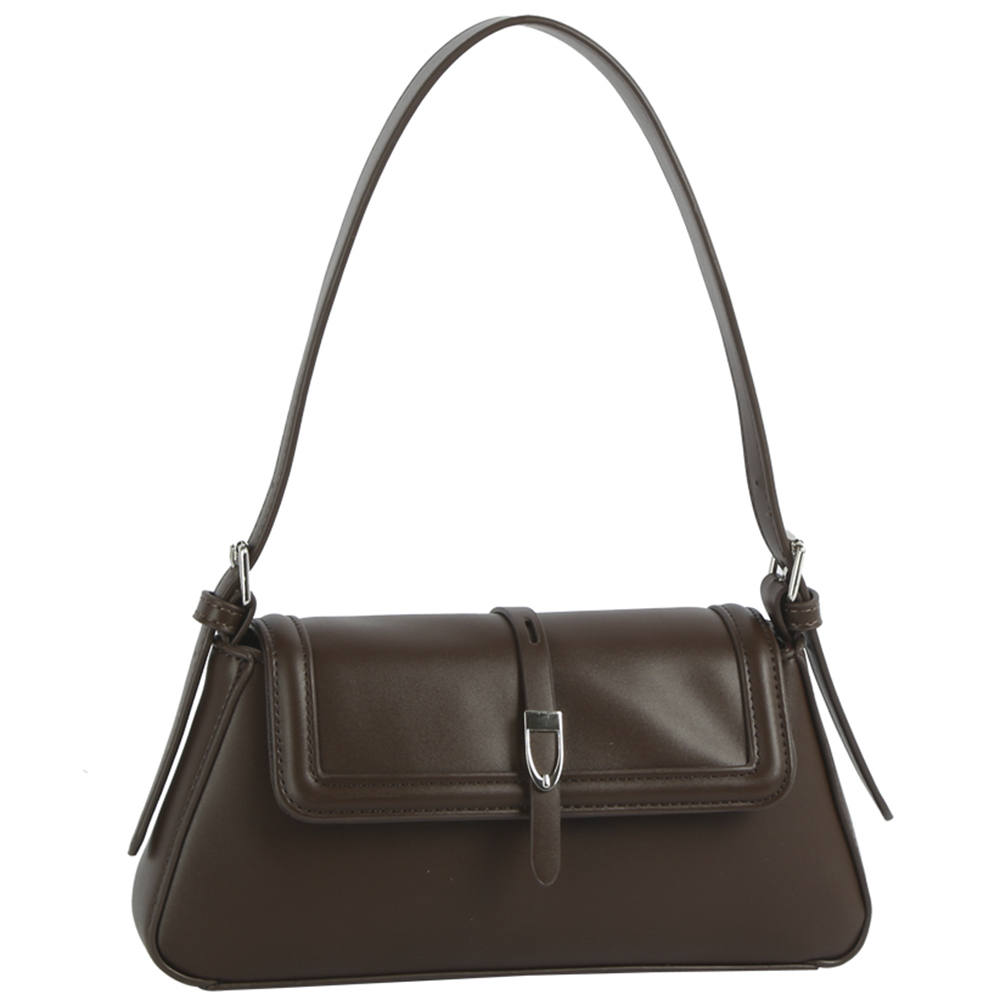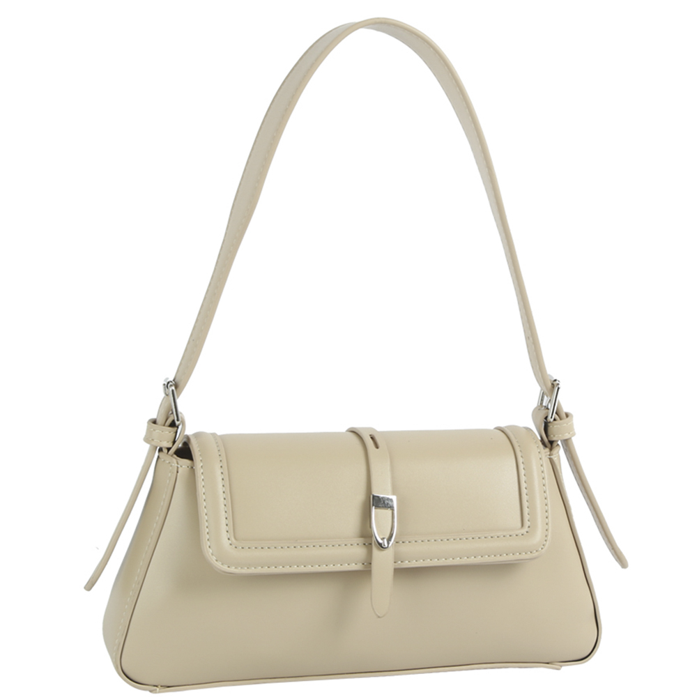 SMOOTH TEXTURED BUCKLE DESIGN SHOULDER BAG
