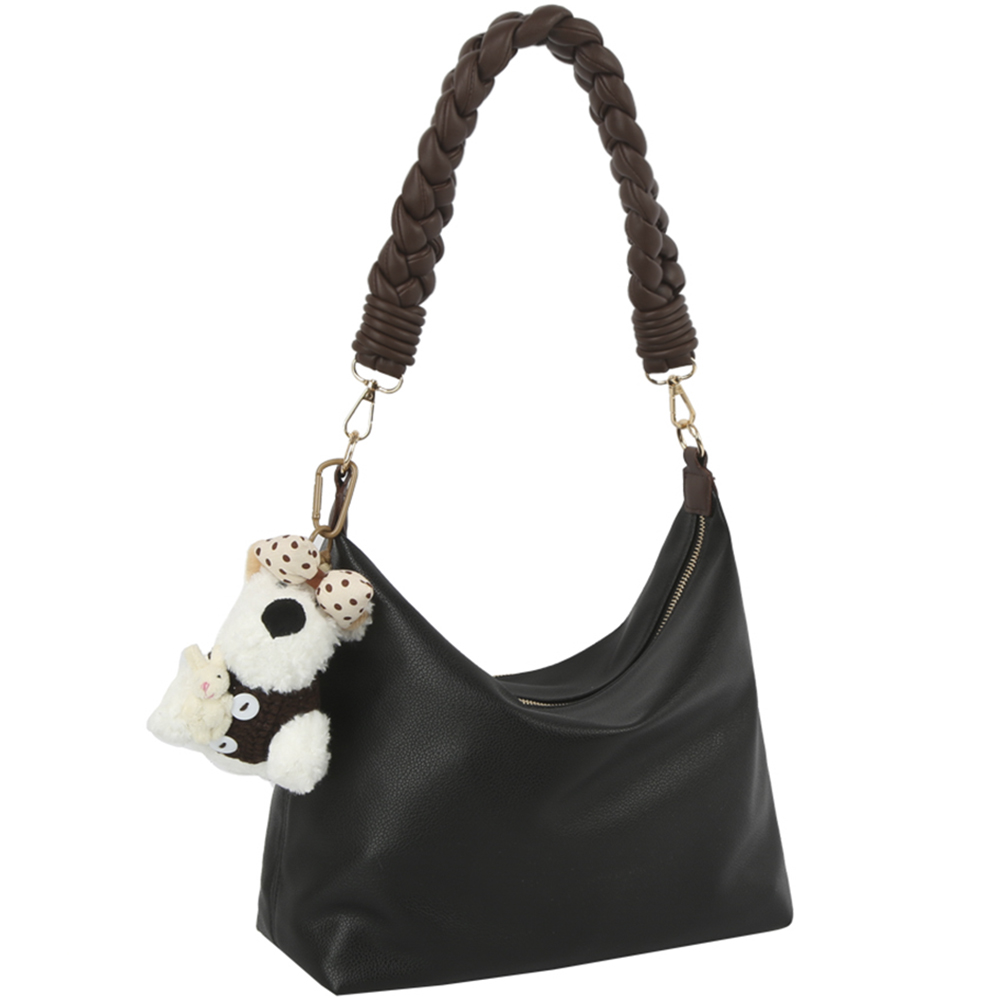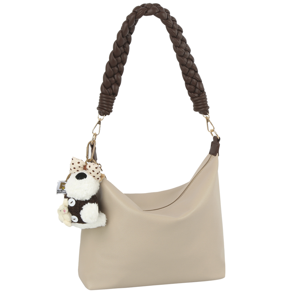 CURVE TEXTURED SHOULDER BAG W DOLL KEYCHAIN