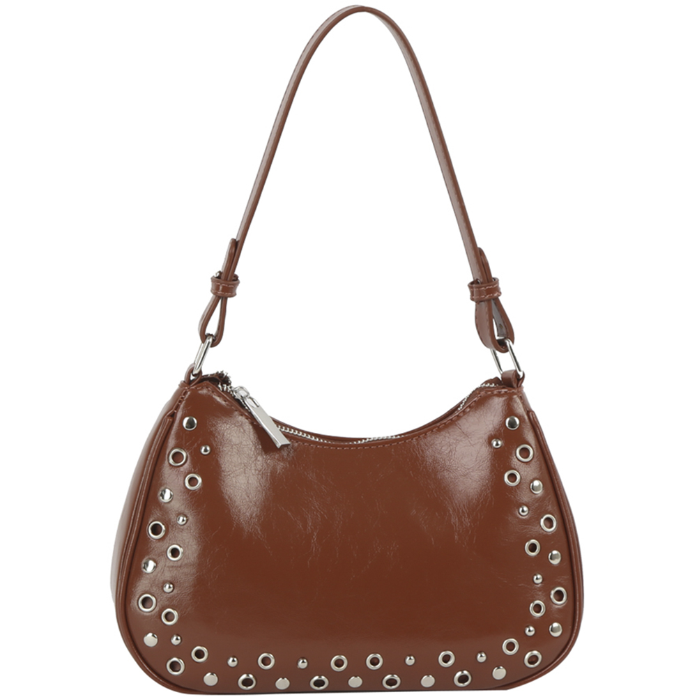 STUD CURVE SHOULDER HOBO BAG