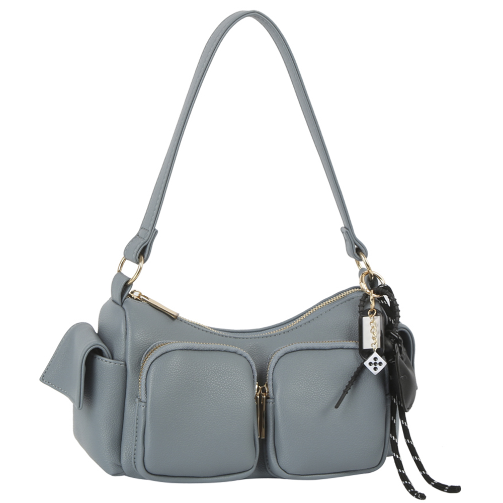 FASHION ZIPPER DESIGN SHOULDER BAG W KEYCHAIN