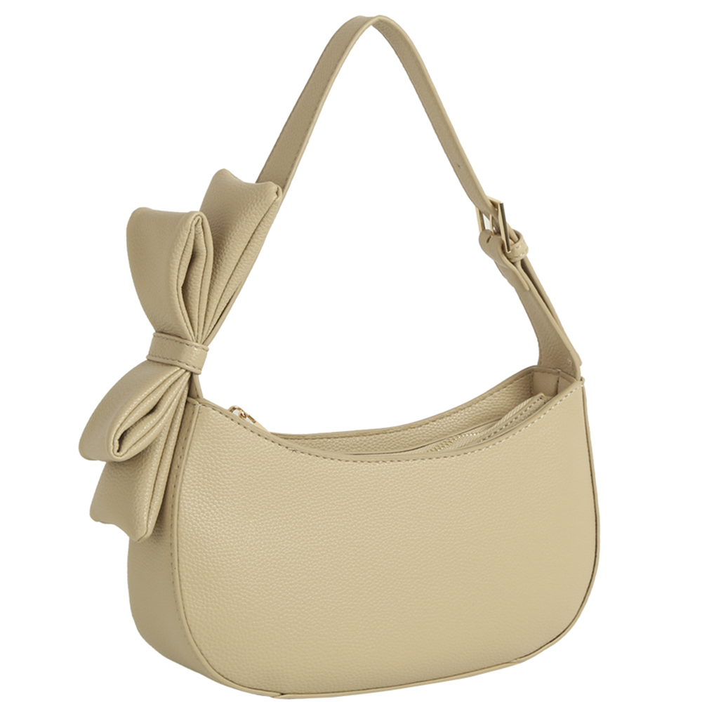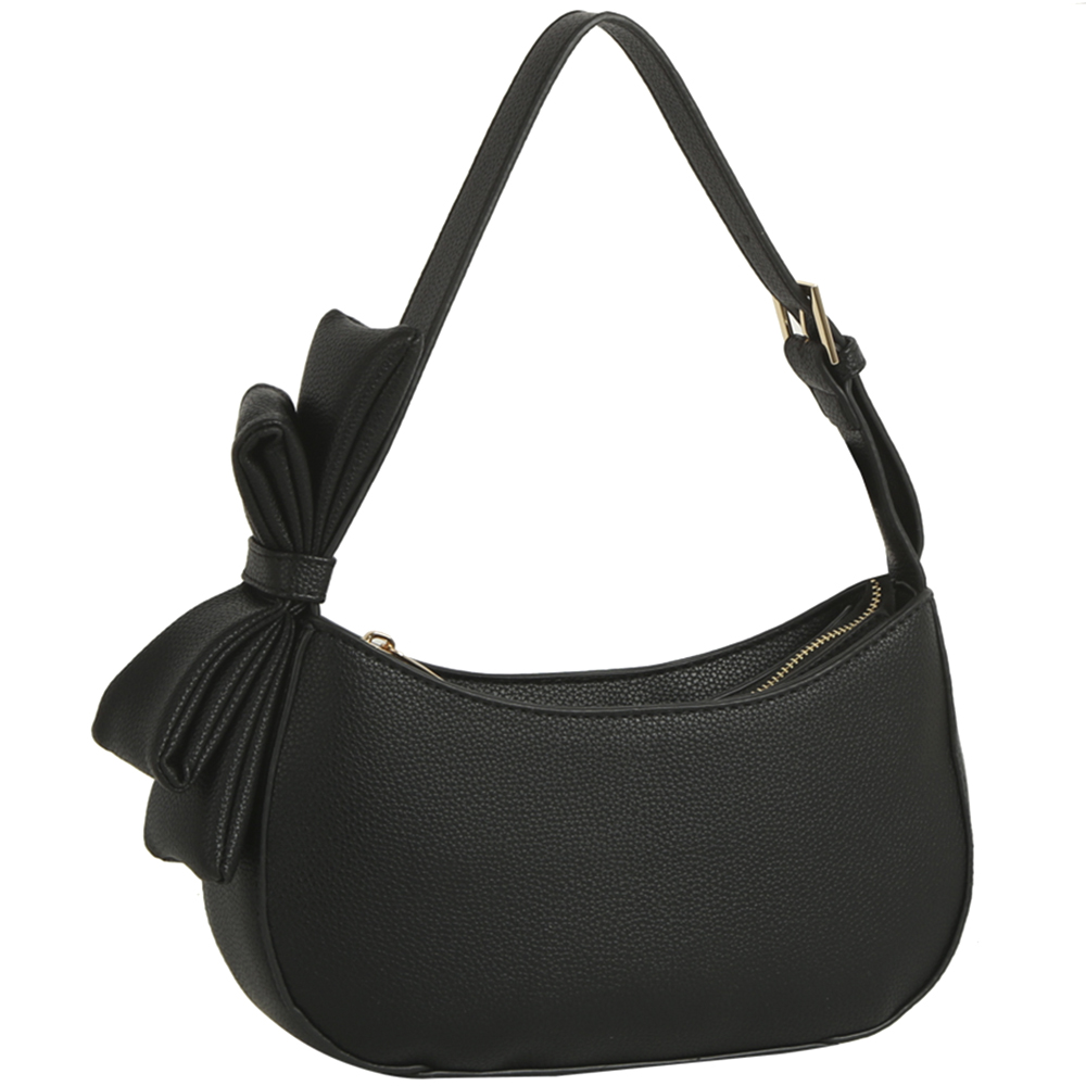 TEXTURED BOW DESIGN SHOULDER BAG