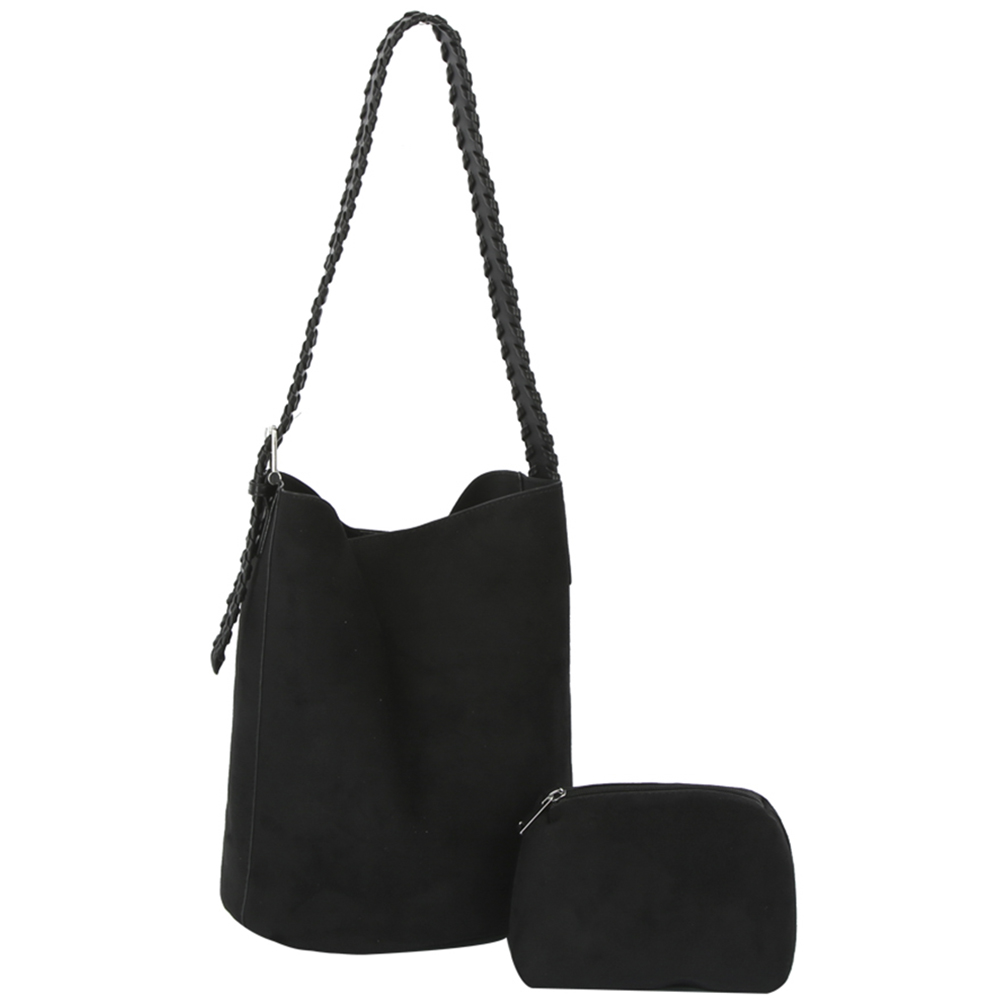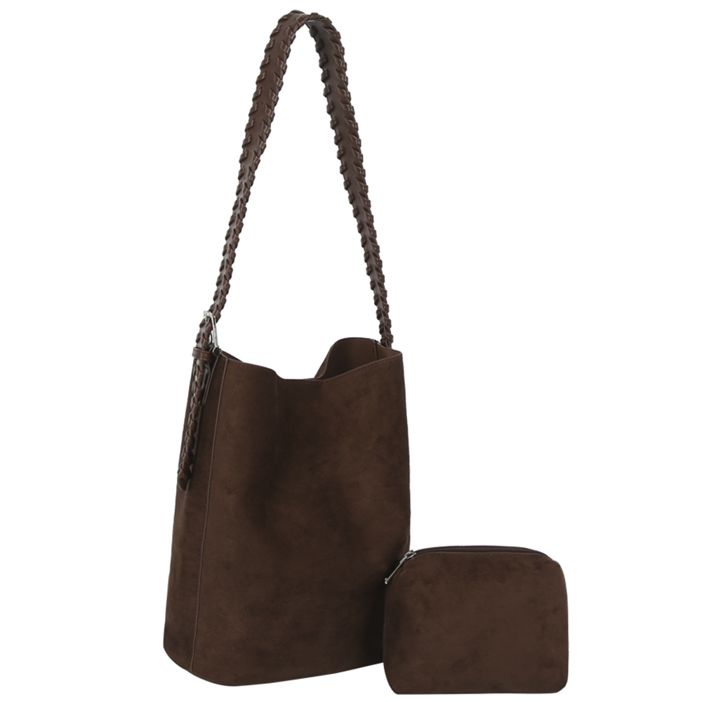 2IN1 SMOOTH AND TEXTURED SHOULDER HOBO BAG W ZIPPER BAG SET