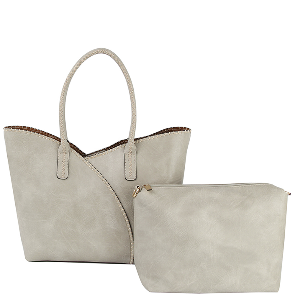 2IN1 STITCHING DESIGN TOTE BAG WITH MINI BAG SET