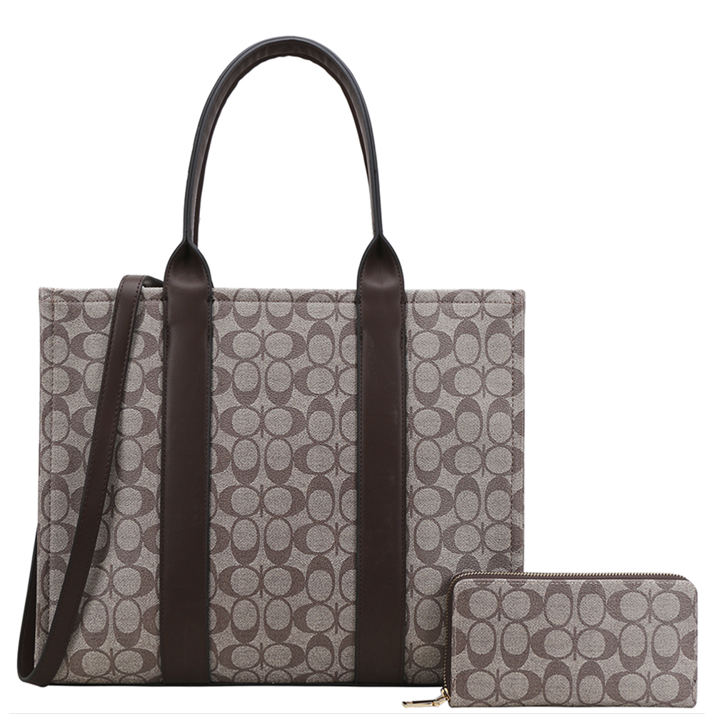 2IN1 OVAL PRINT DESIGN TOTE BAG W WALLET SET
