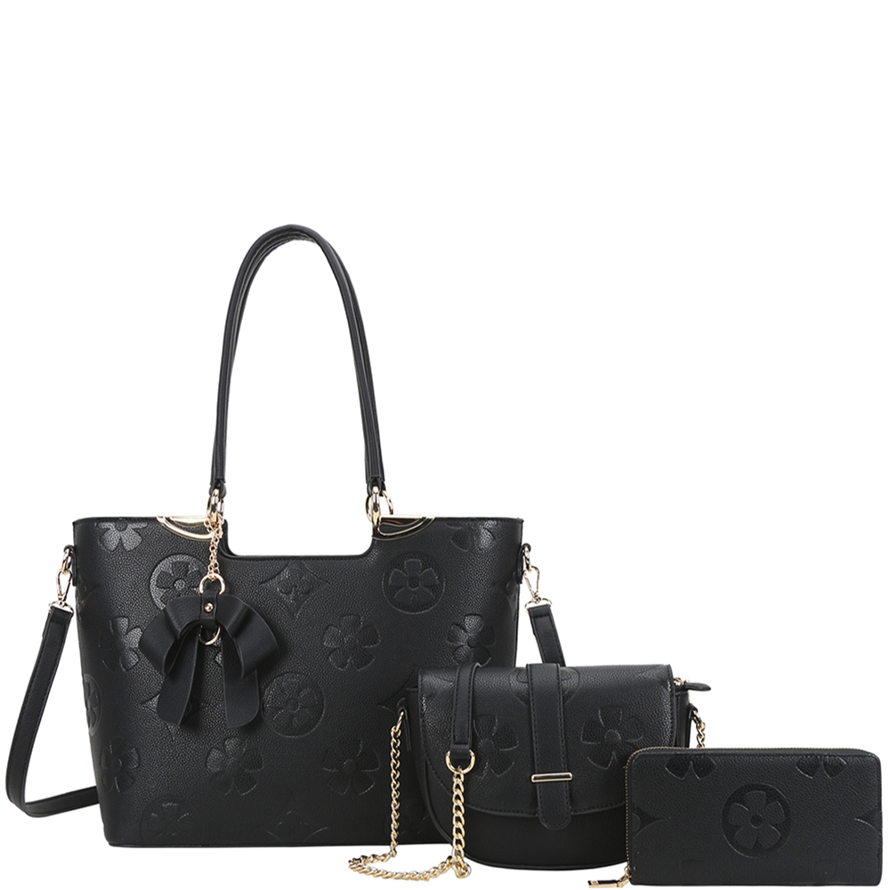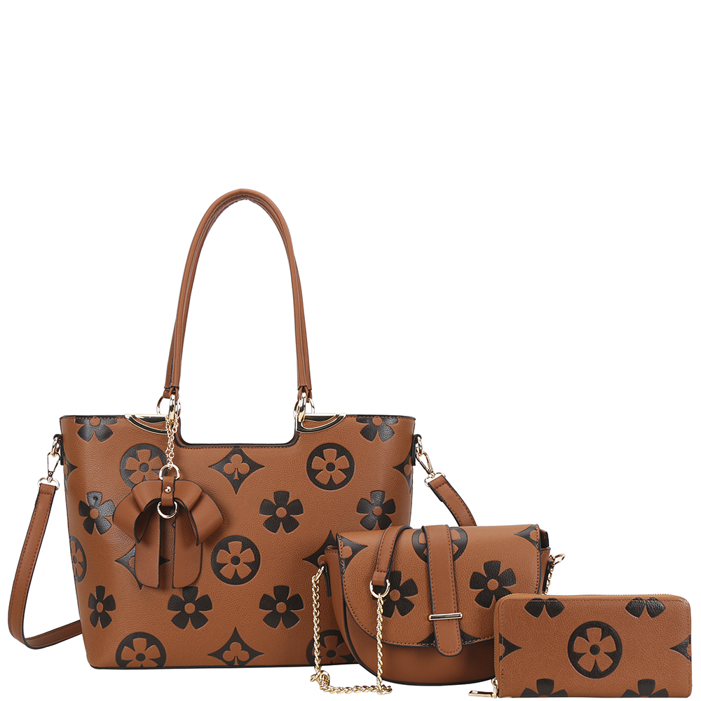 3IN1 DESIGN PATTERN BOW SHOULDER TOTE BAG W CROSSBODY AND WALLET SET