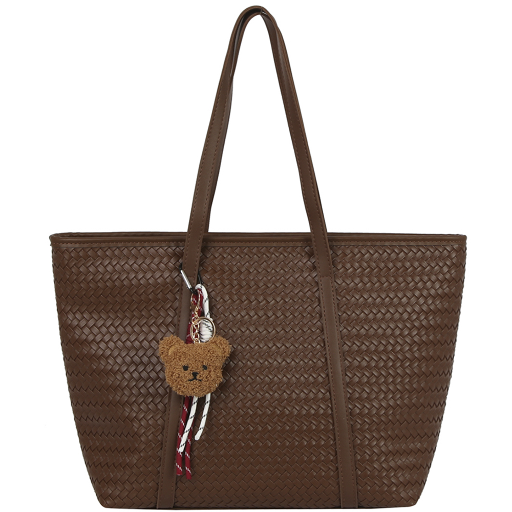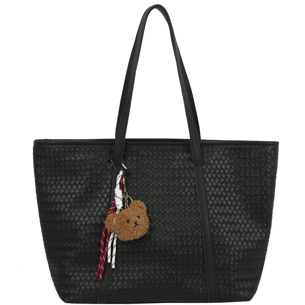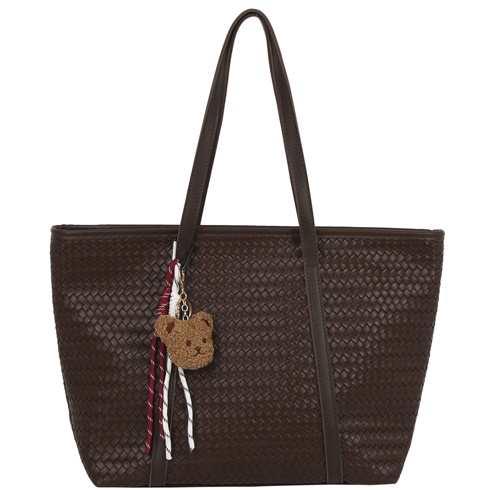 WOVEN TEXTURED SHOULDER TOTE BAG W BAG CHARM