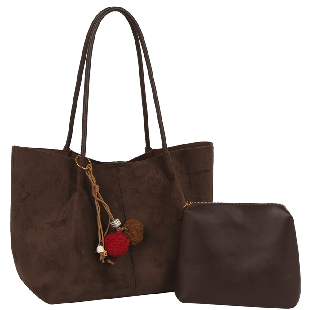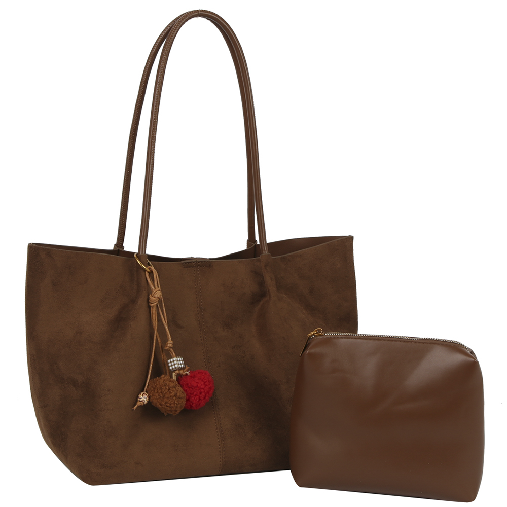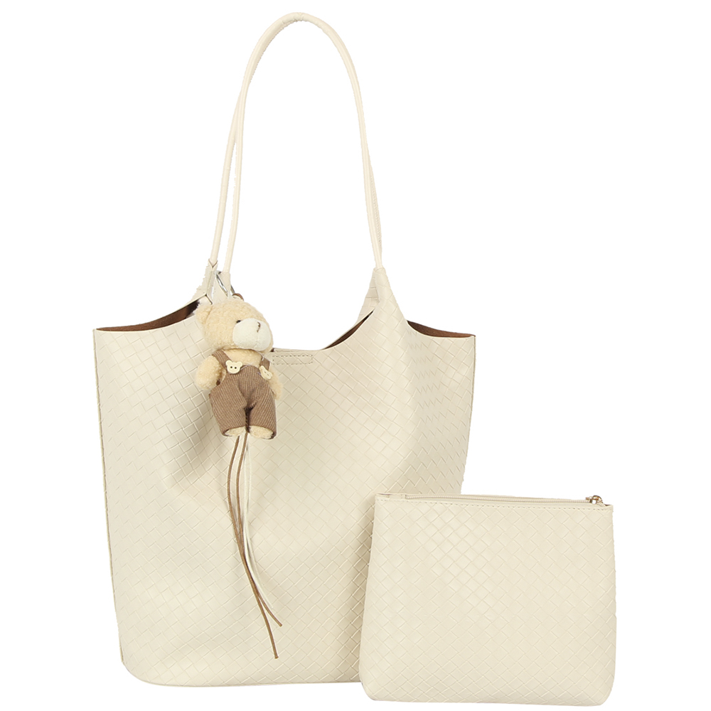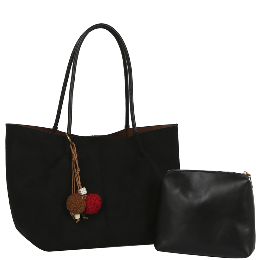 2IN1 PLAIN TOTE W BAG CHARM AND POUCH