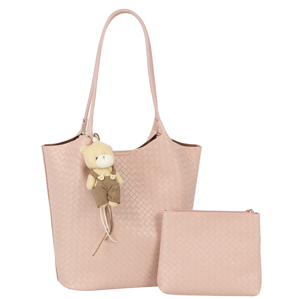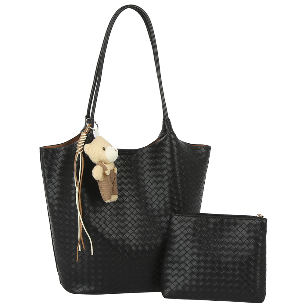 2IN1 WOVEN DESIGN TOTE W BAG CHARM AND POUCH SET