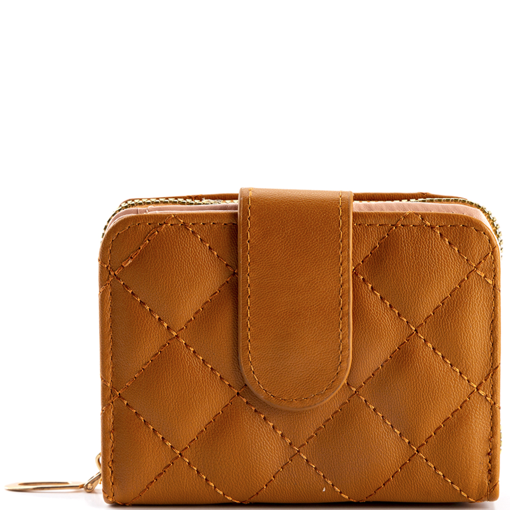 QUILTED SMOOTH CARD HOLDER ZIPPER WALLET WITH HAND STRAP