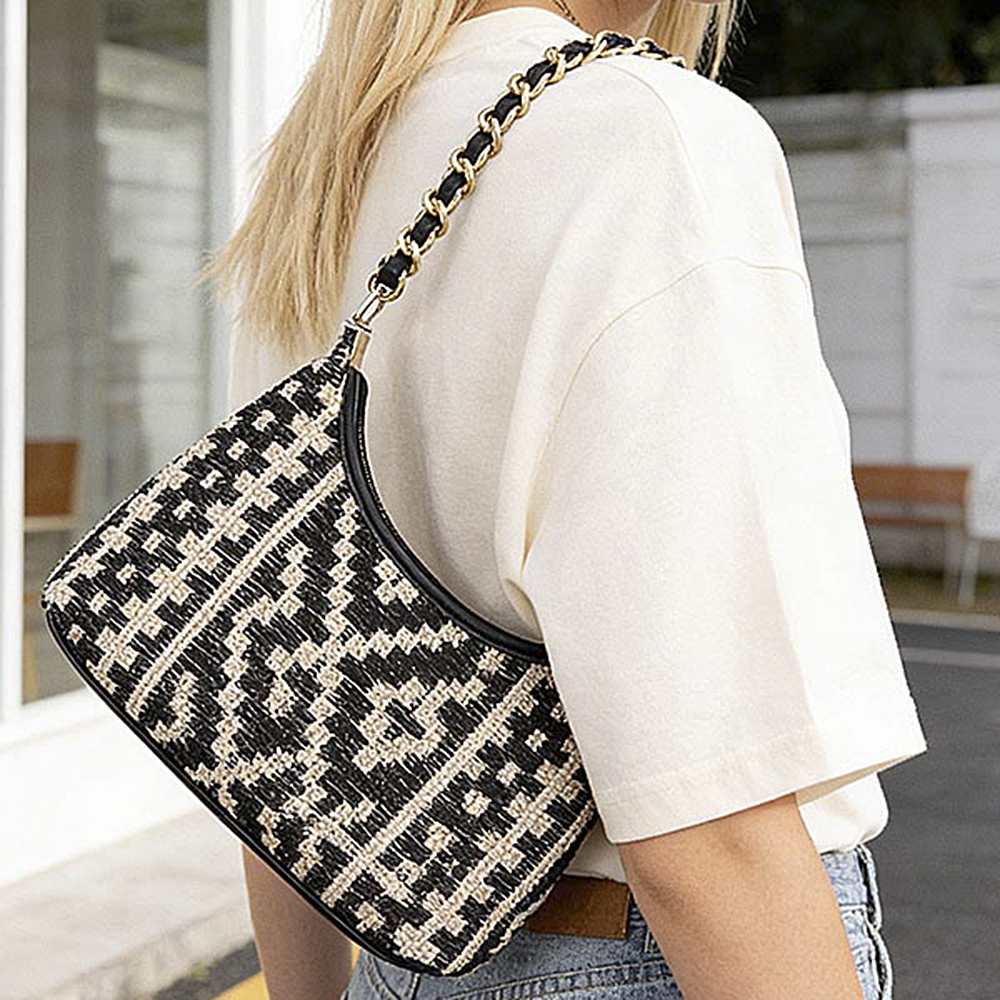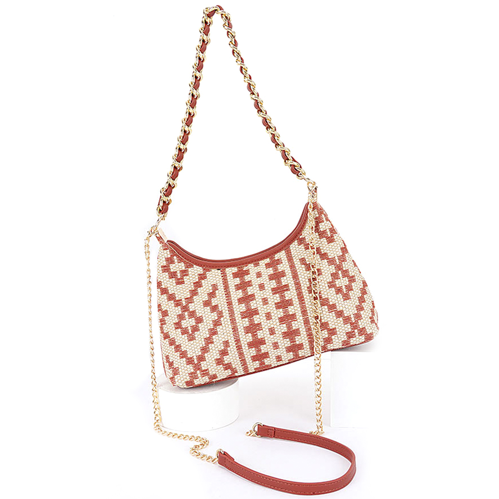 WOVEN STRAW PATTERN DESIGN SHOULDER CROSSBODY BAG