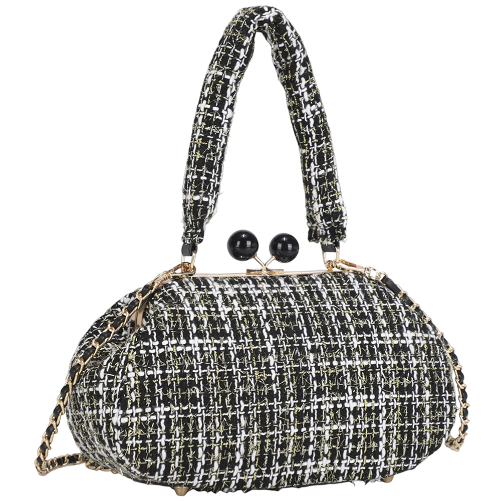 STYLISH TWEED TEXTURED HANDLE CROSSBODY BAG