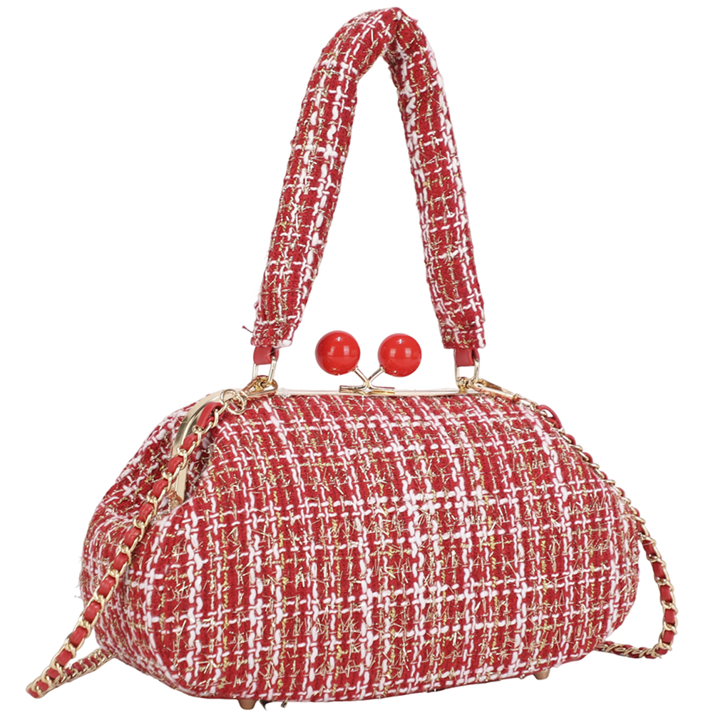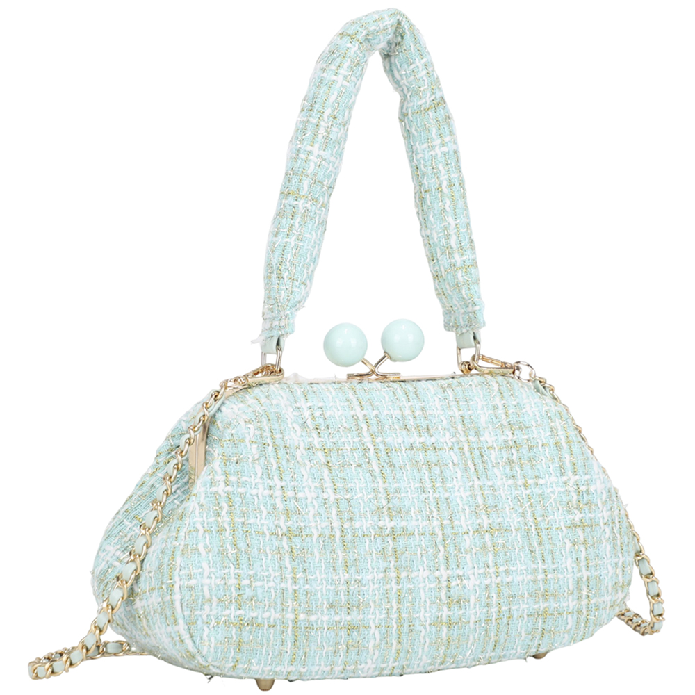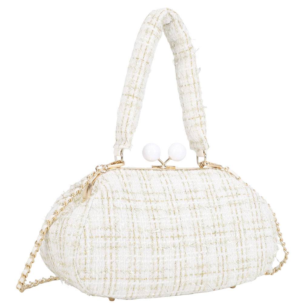 CHIC TWEED TEXTURED HANDLE EVENING CROSSBODY BAG