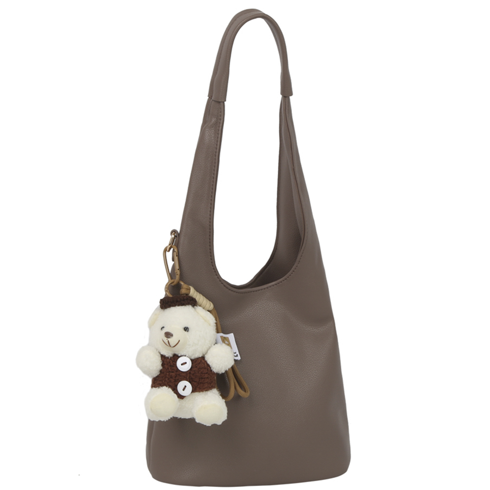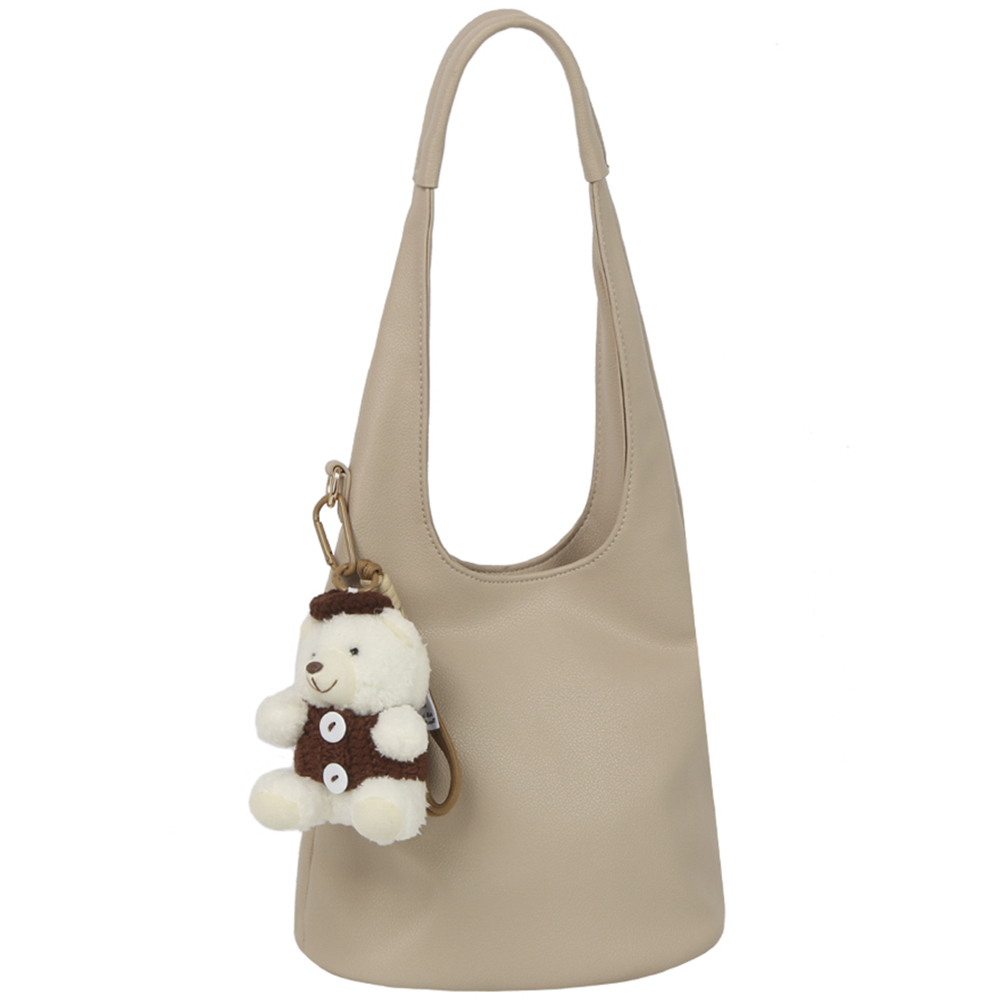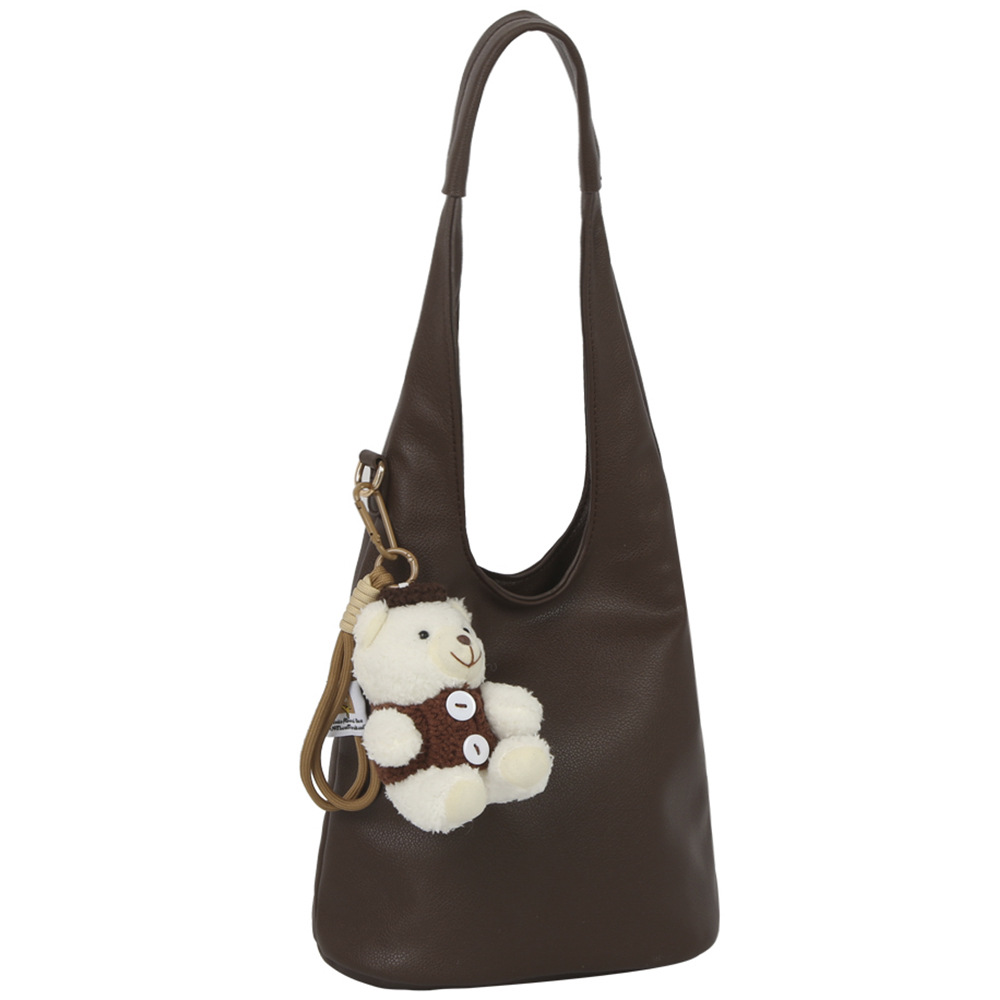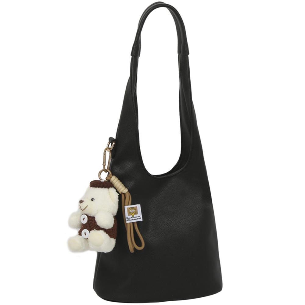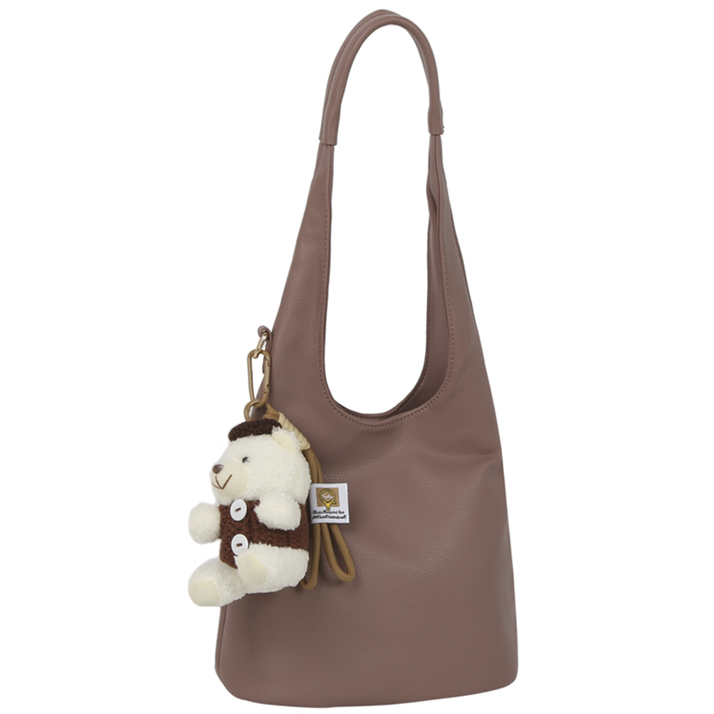 PLAIN TEXTURED SHOULDER HOBO BAG W DOLL KEYCHAIN