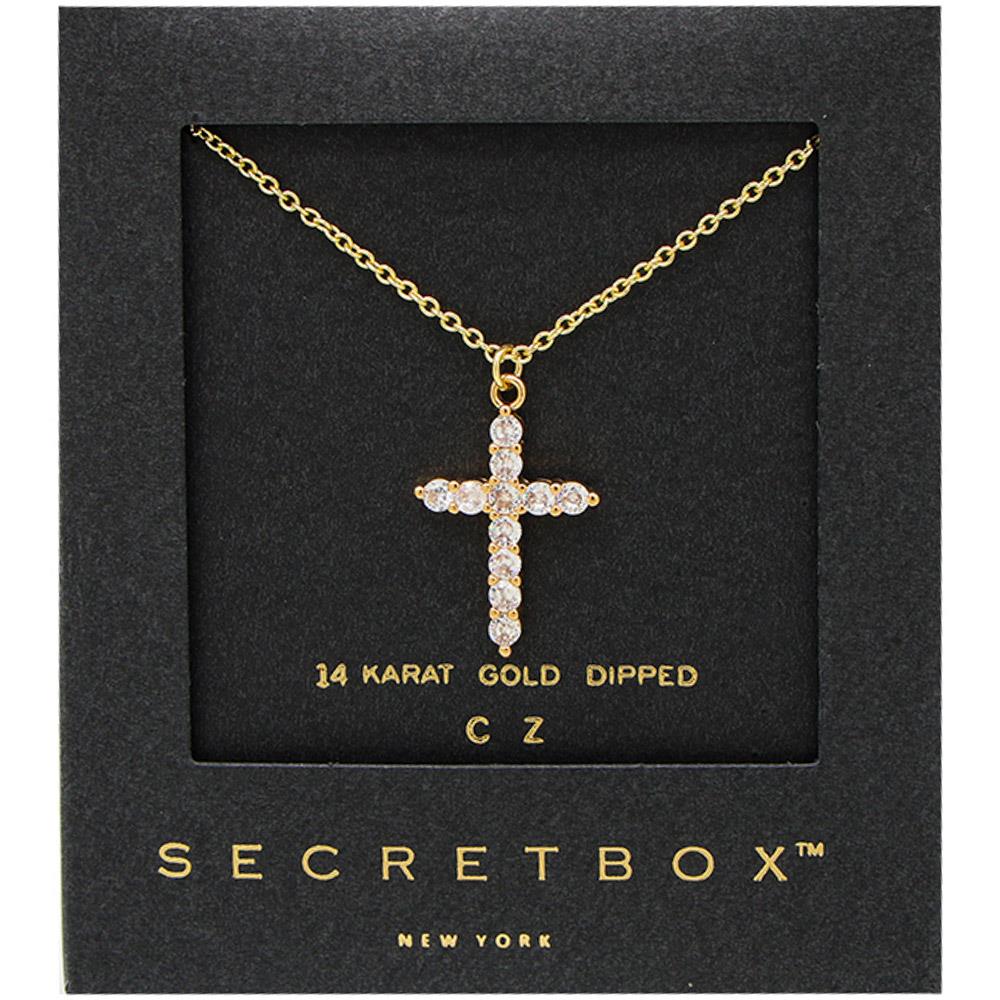 SECRET BOX 14K GOLD DIPPED CROSS NECKLACE