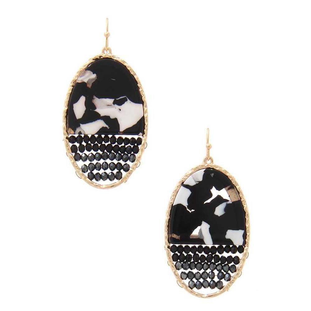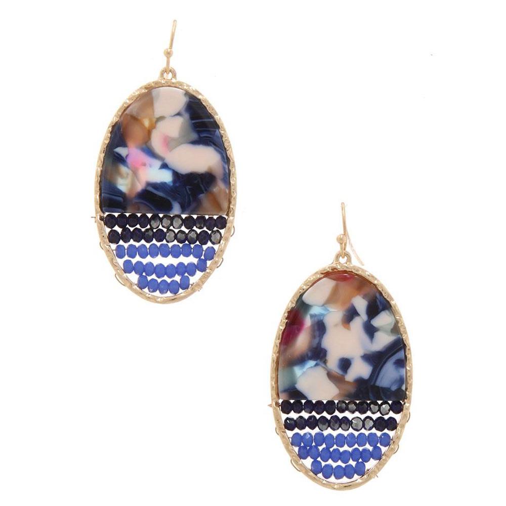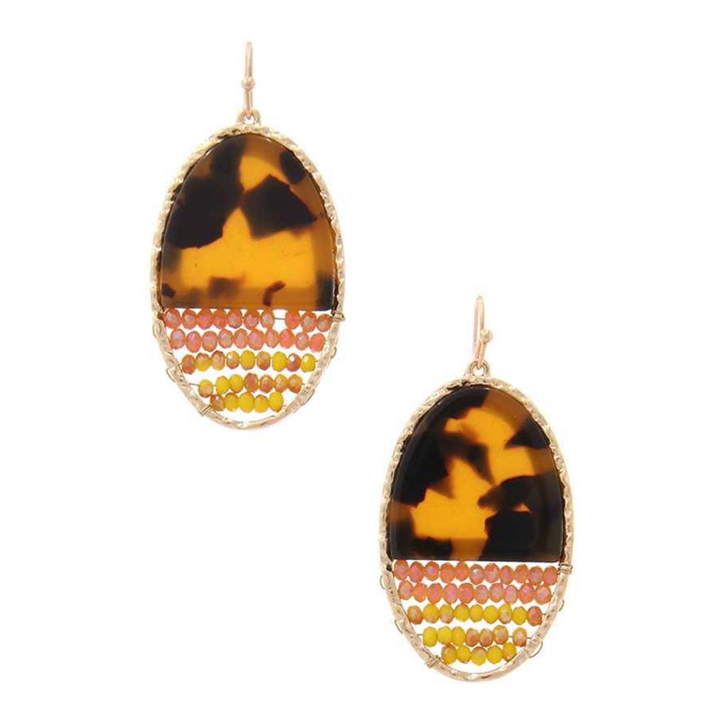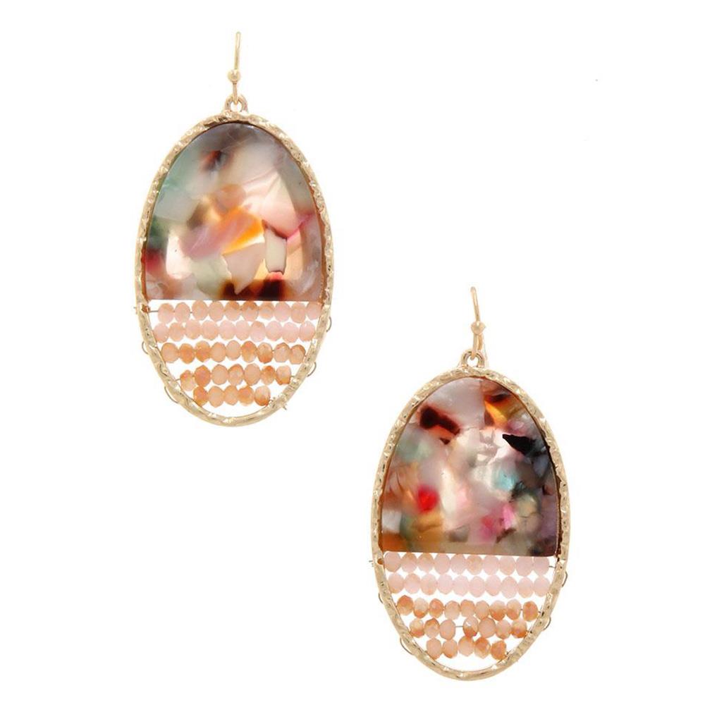 HALF ACETATE OVAL SHAPE BEADED DROP EARRING
