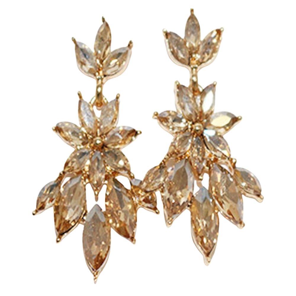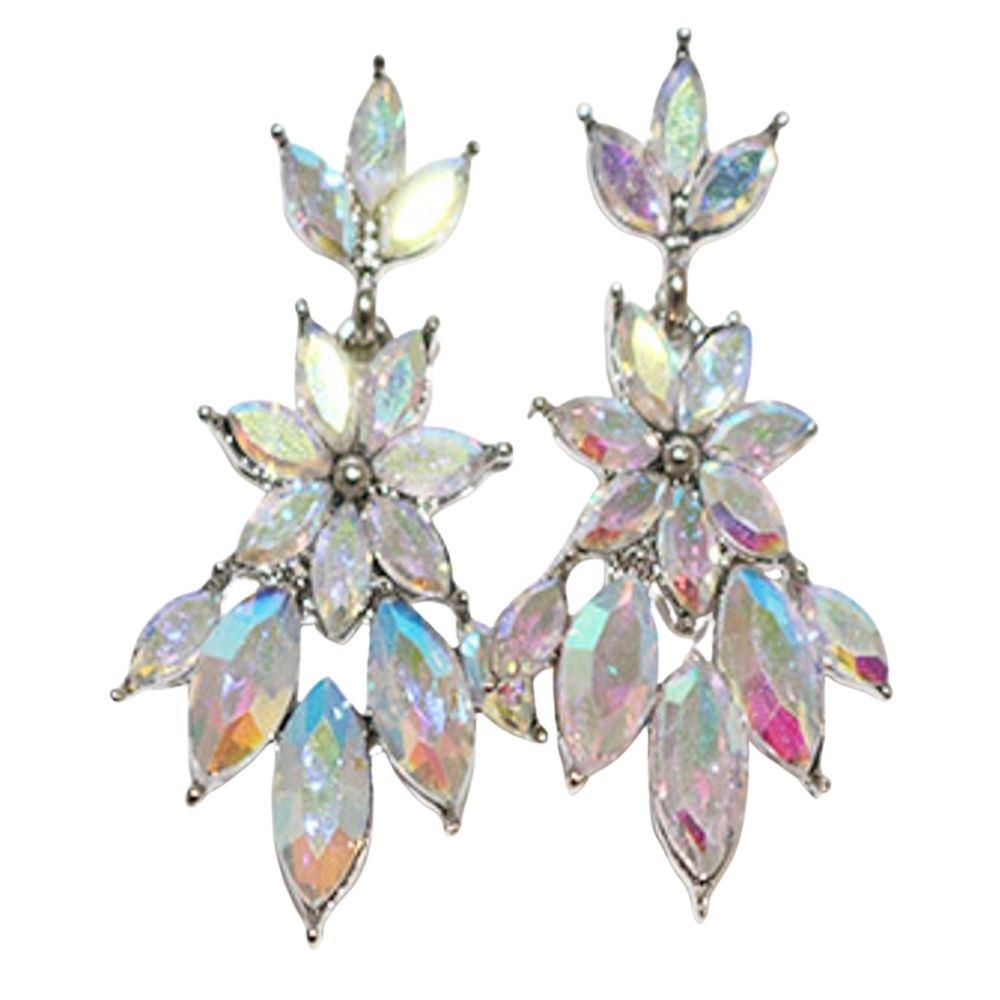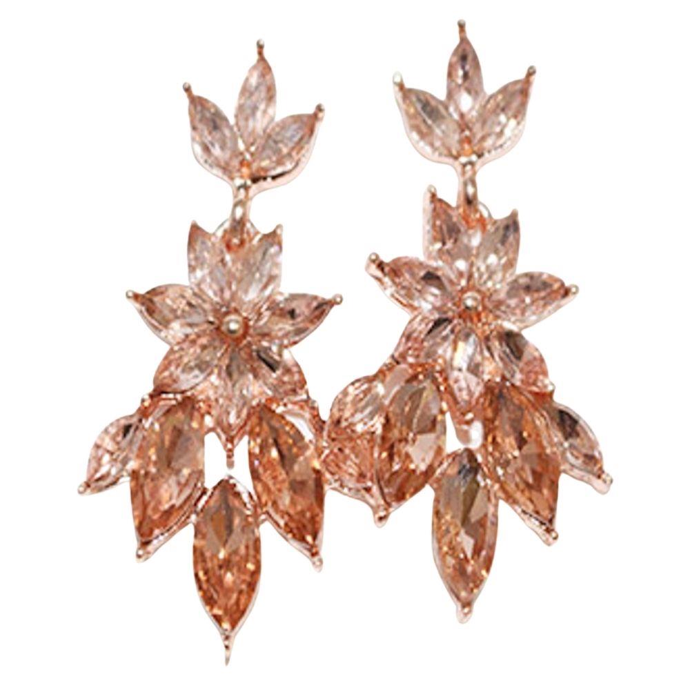 FLOWER RHINESTONE POST DROP EARRING