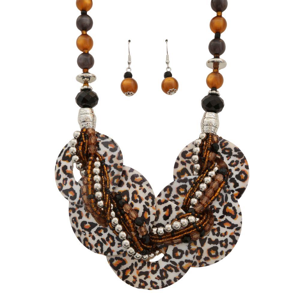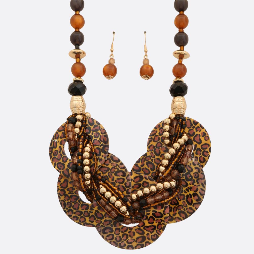 TEXTURED METAL LARGE FLORAL LINK STATEMENT NECKLACE EARRING SET