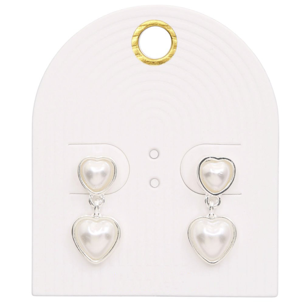 DOUBLE PEARL HEART LINK DANGLE EARRING