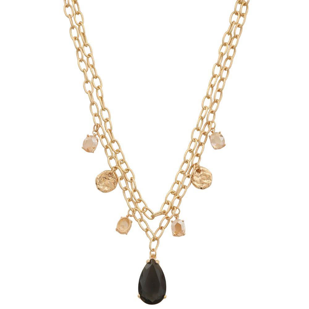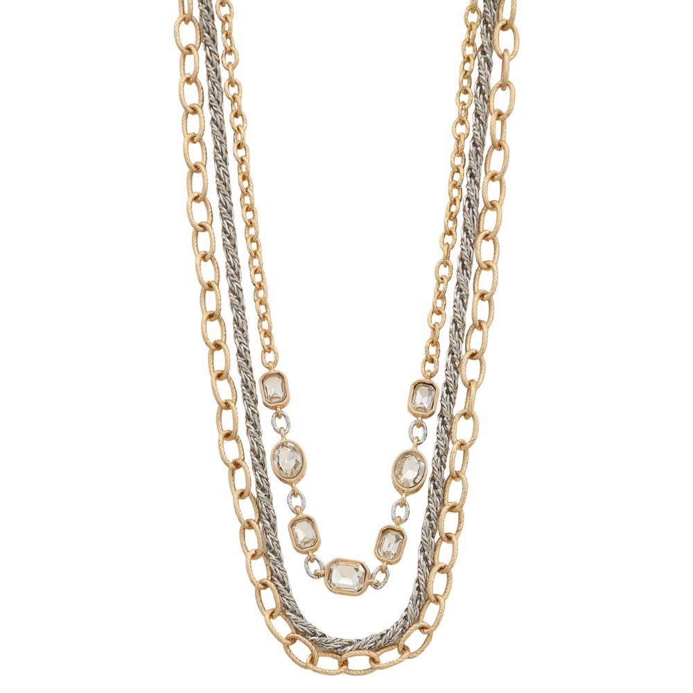 TWO TONE MULTI CHAIN STONE LAYERED NECKLACE