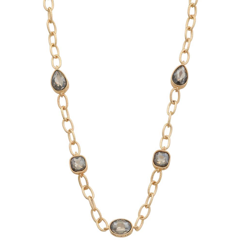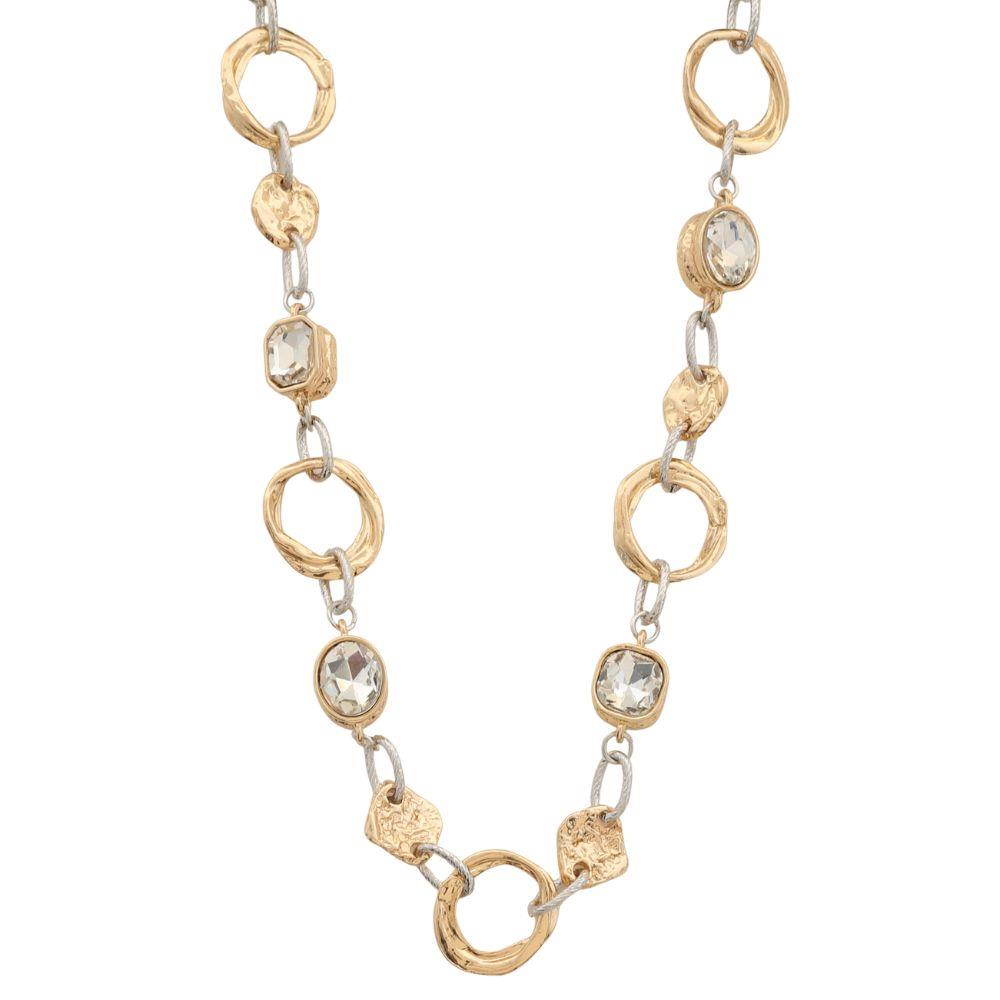 TWO TONE CIRCLE STONE LINK METAL NECKLACE