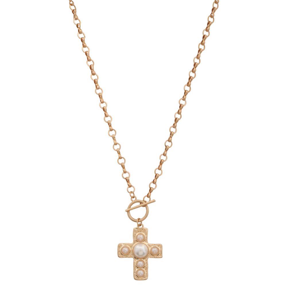 HAMMERED METAL CROSS DANGLE EARRING