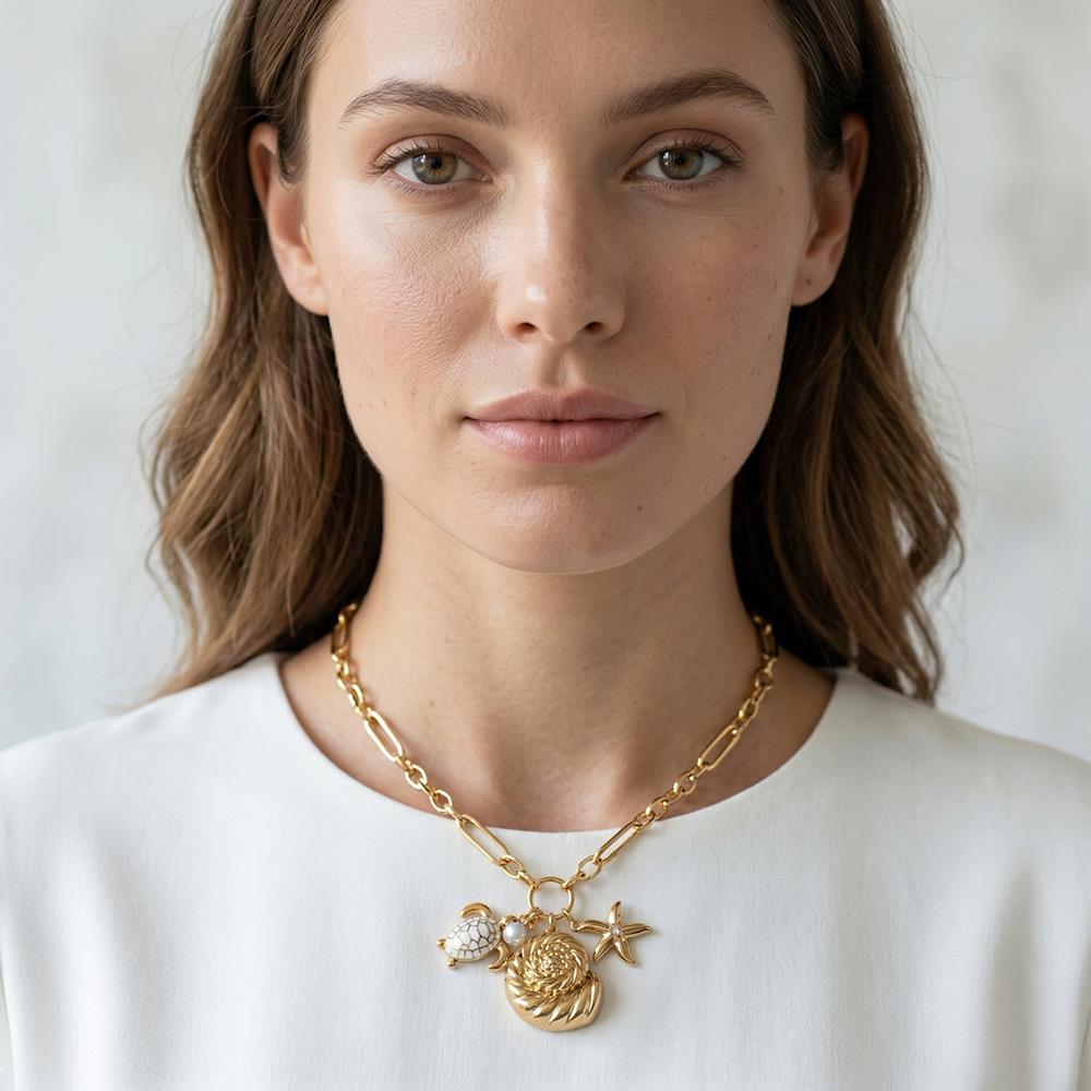 SHELL STARFISH TURTLE PEARL PENDANT NECKLACE