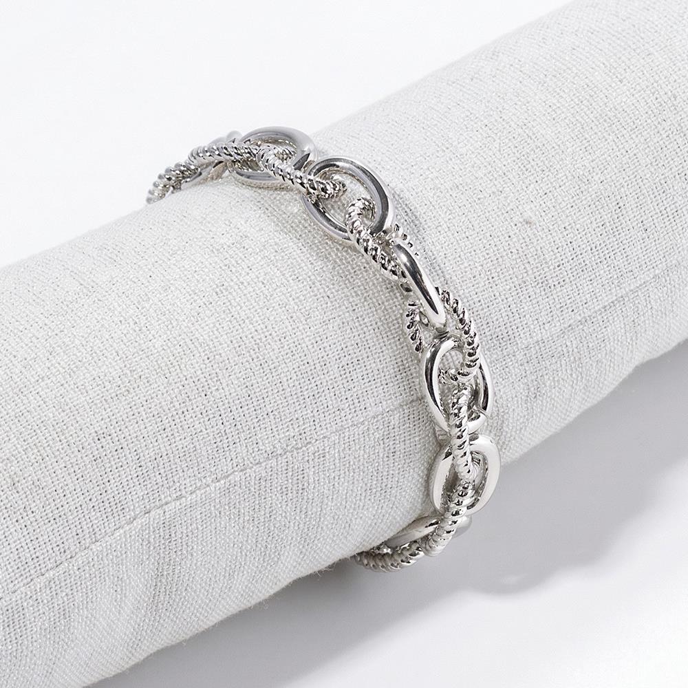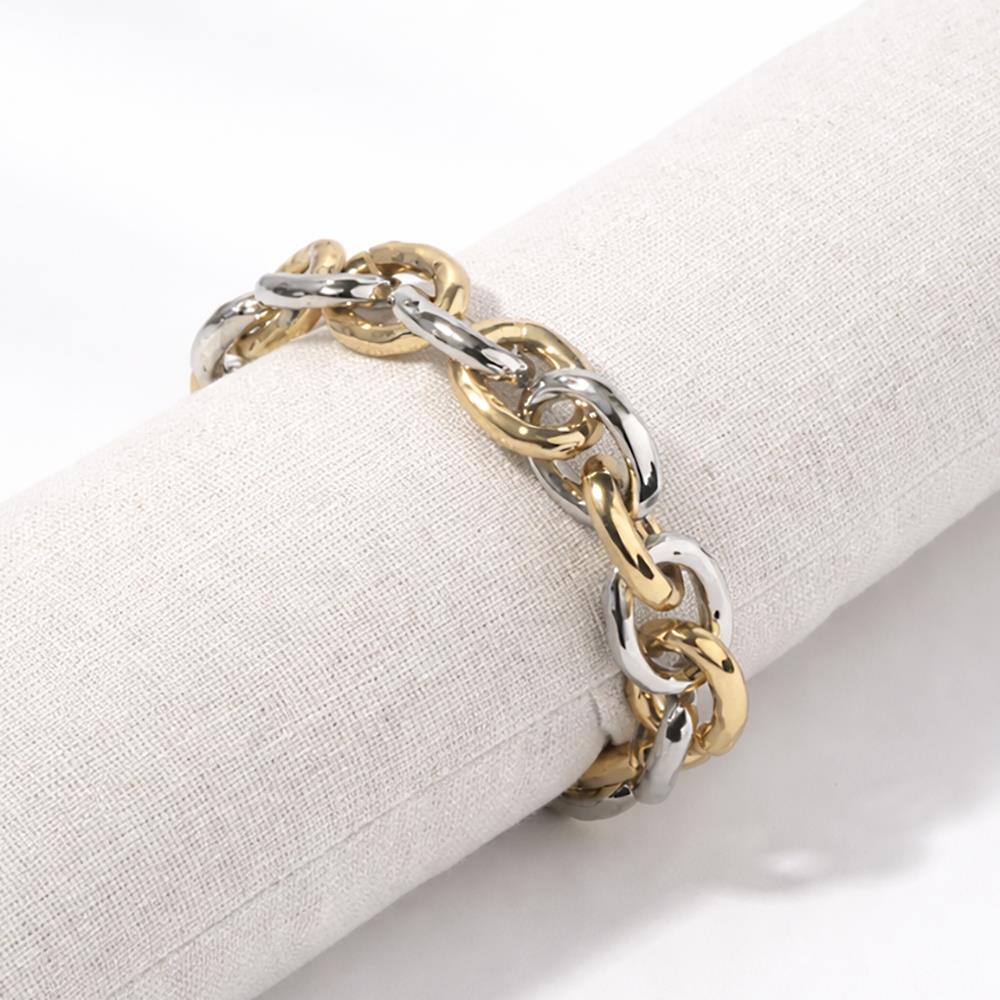 CHUNKY OVAL CHAIN 2 TEXTURED METAL STRETCHED BRACELET
