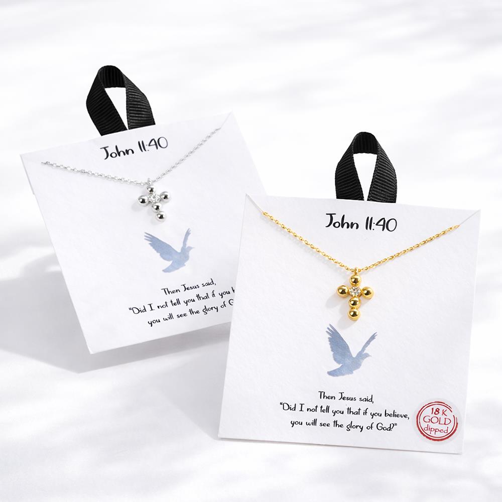 18K GOLD DIPPED JOHN 11:40 BUBBLE CROSS NECKLACE