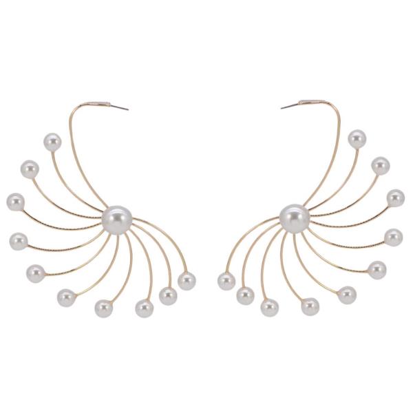 DOUBLE METAL FLOWER PERAL BEAD POST DANGLE EARRING