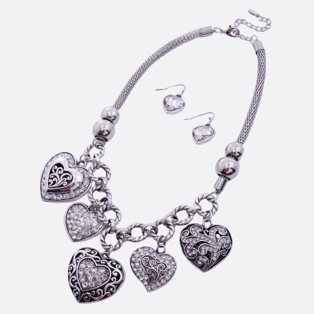RHINESTONE PENDANT NECKLACE EARRING SET