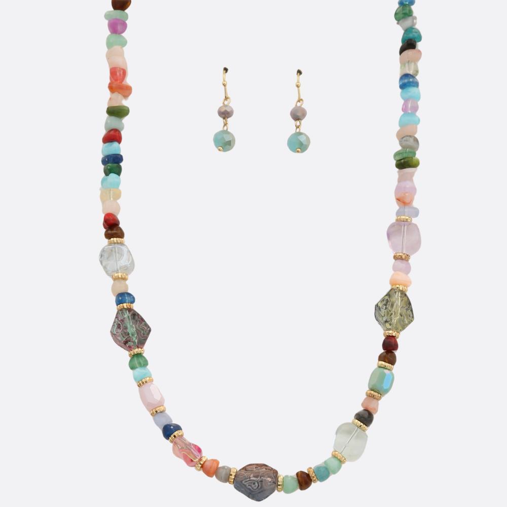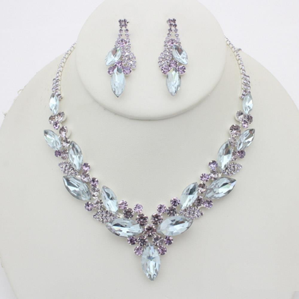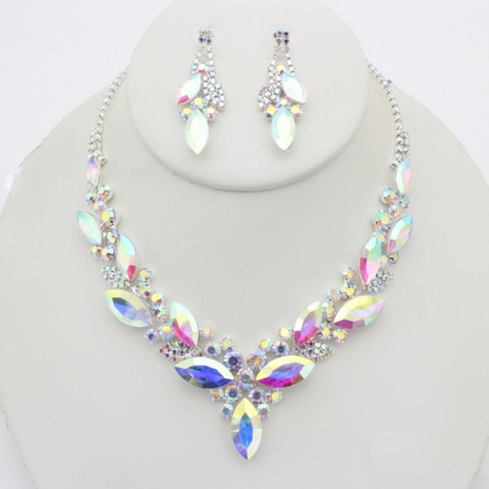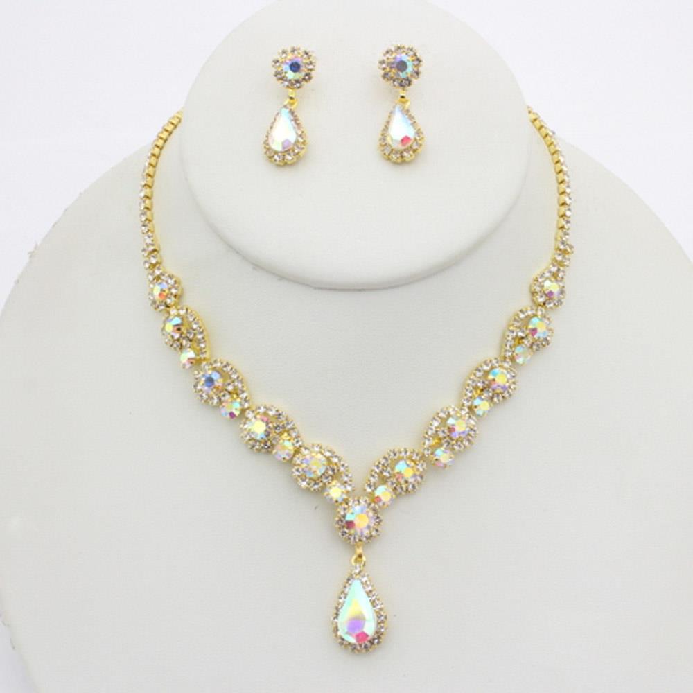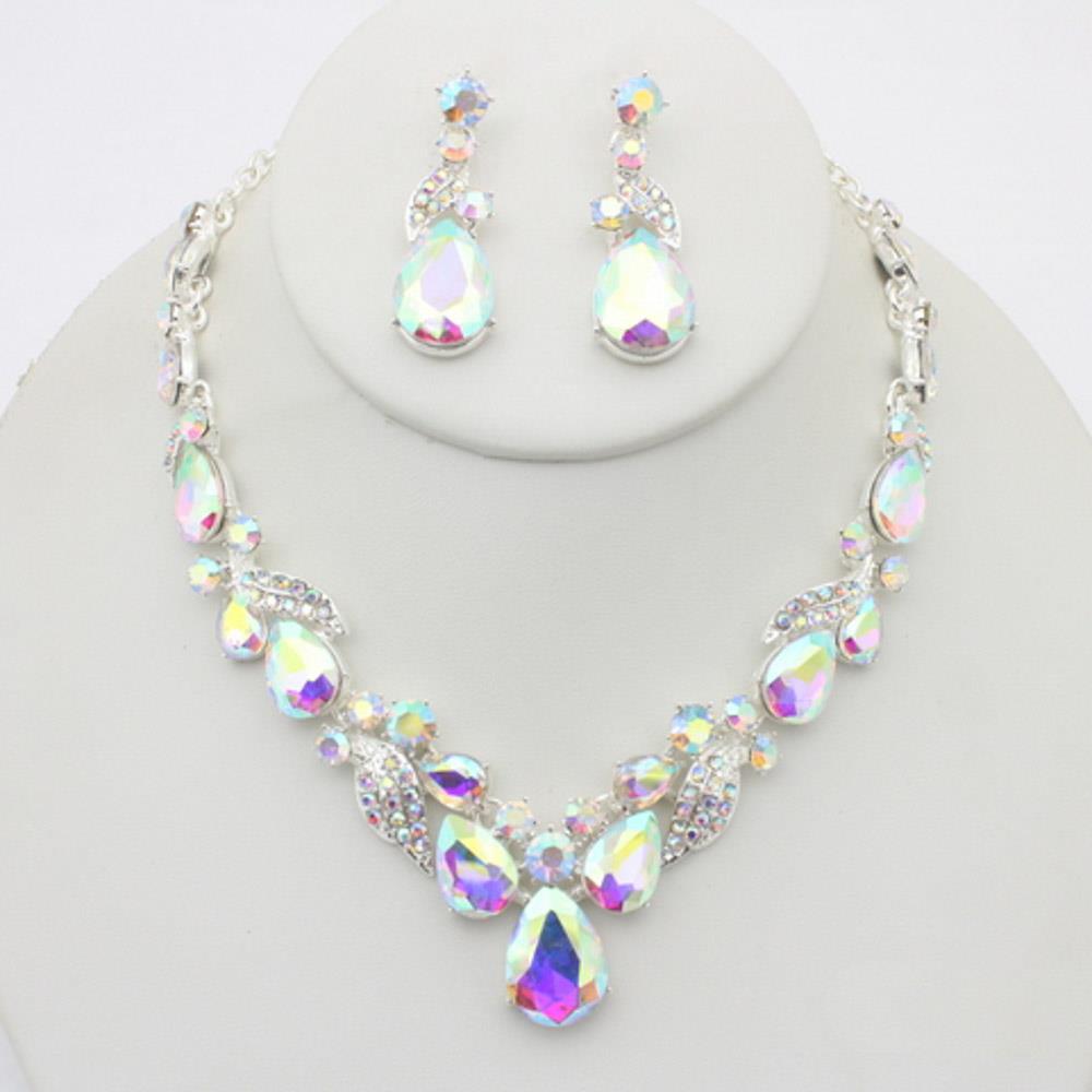 RHINESTONE IRIDESCENT DROP NECKLACE EARRING SET