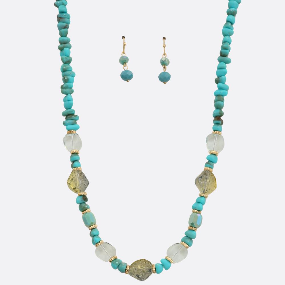 RHINESTONE DROP STONE NECKLACE EARRING SET