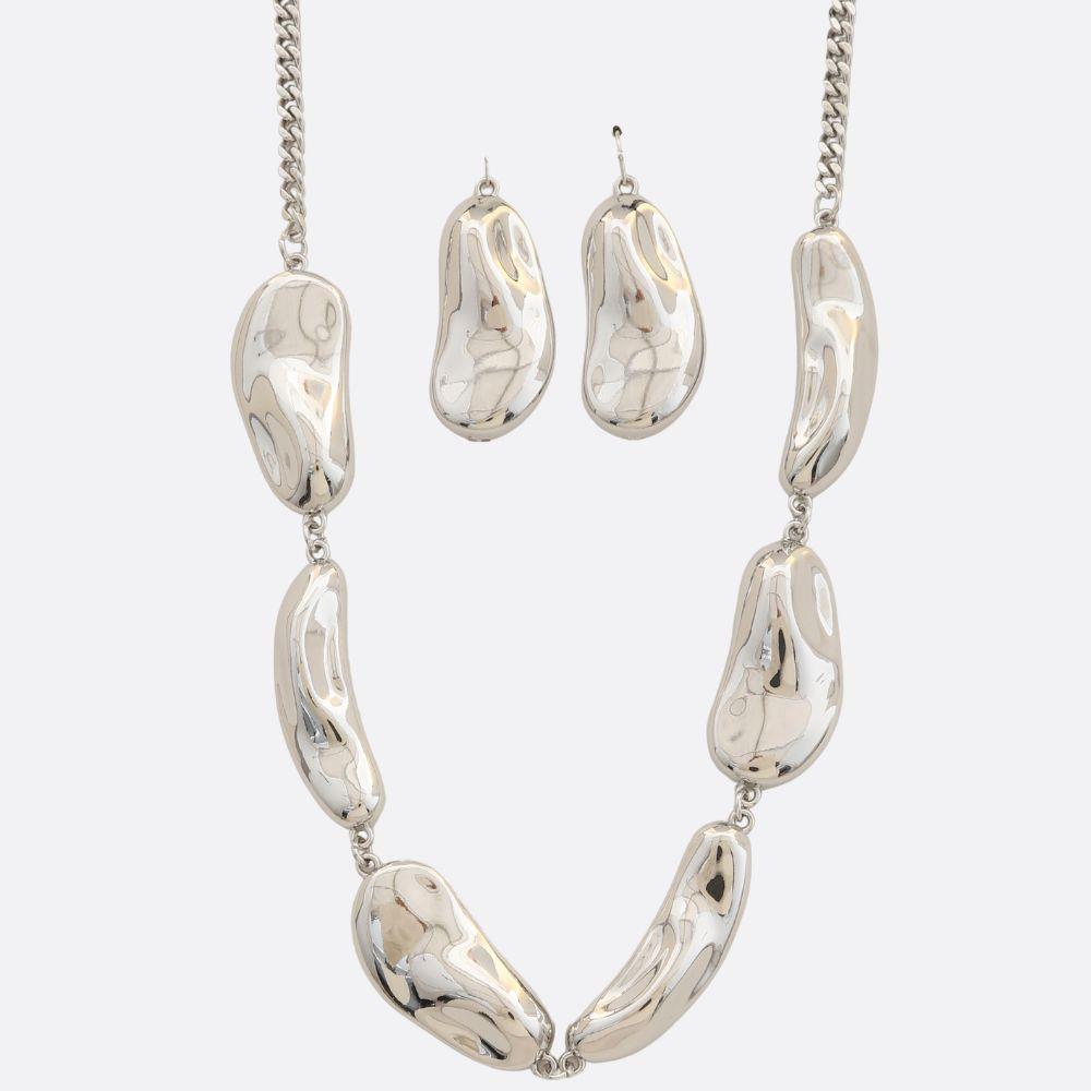 RHINESTONE LAYERED PETAL NECKLACE EARRING SET