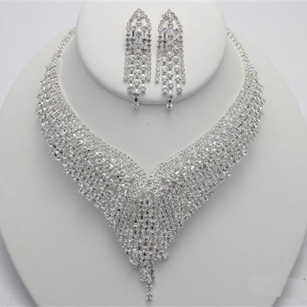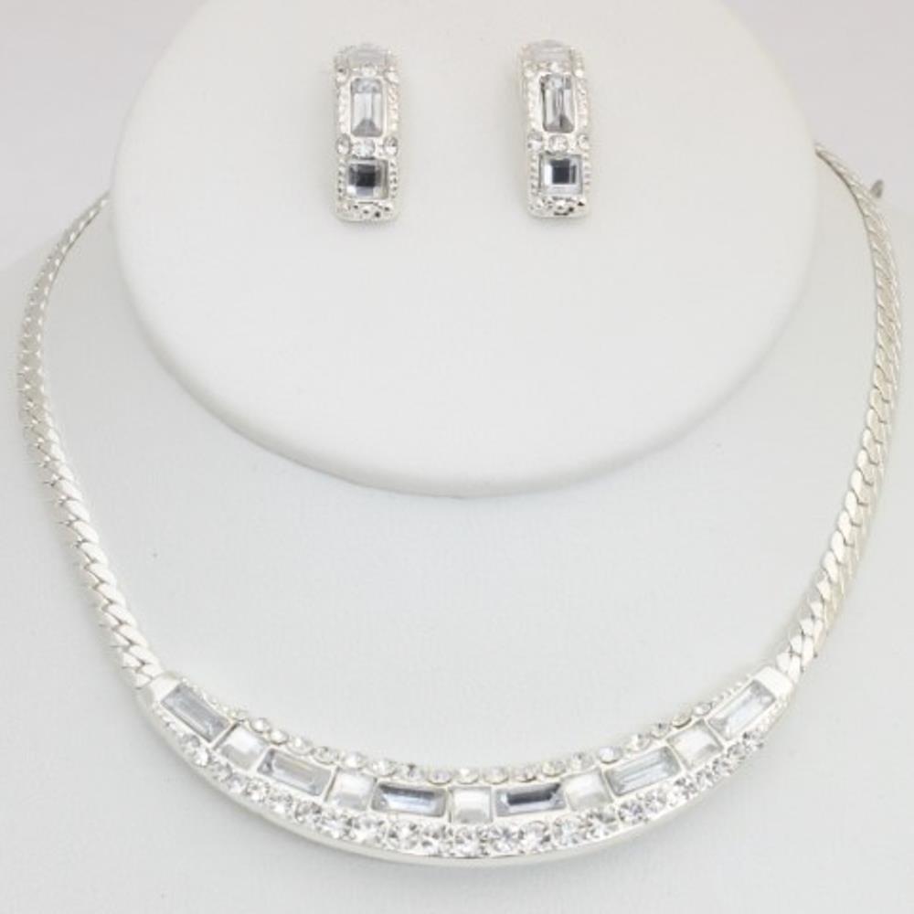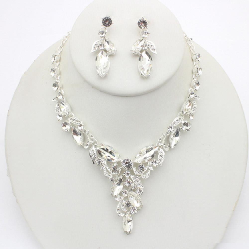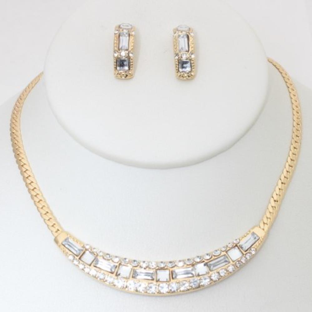 RHINESTONE CLASSIC DROP NECKLACE EARRING SET