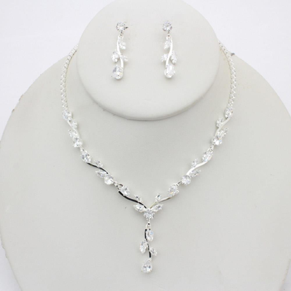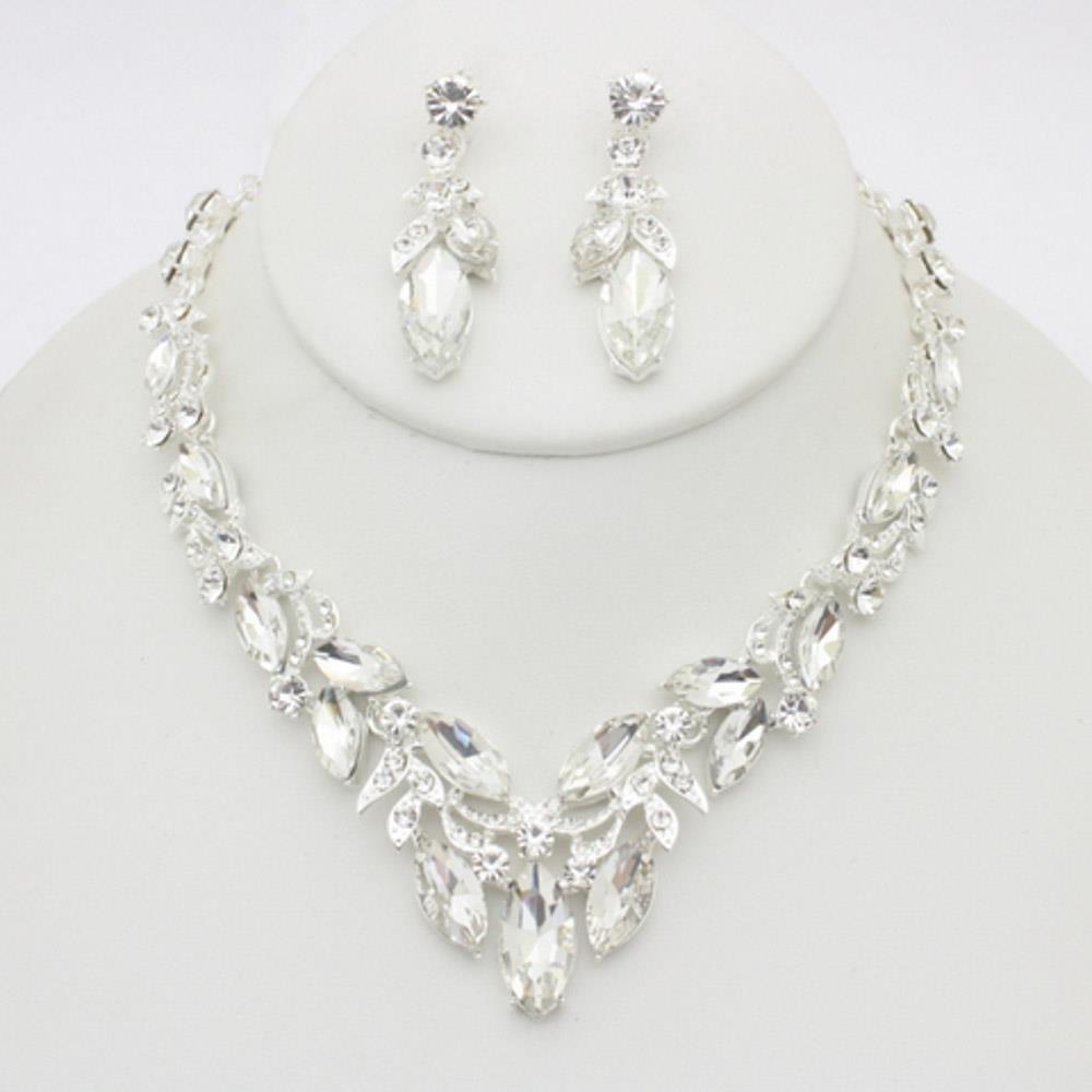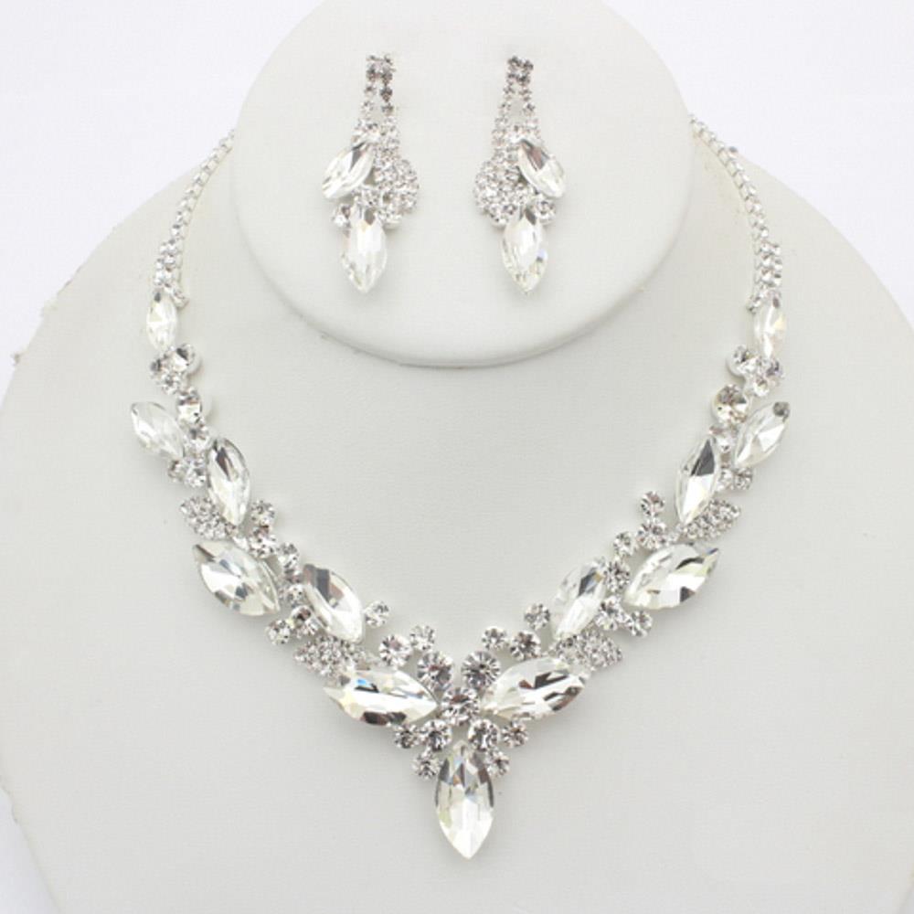 MARQUISE RHINESTONE LINE NECKLACE EARRING SET