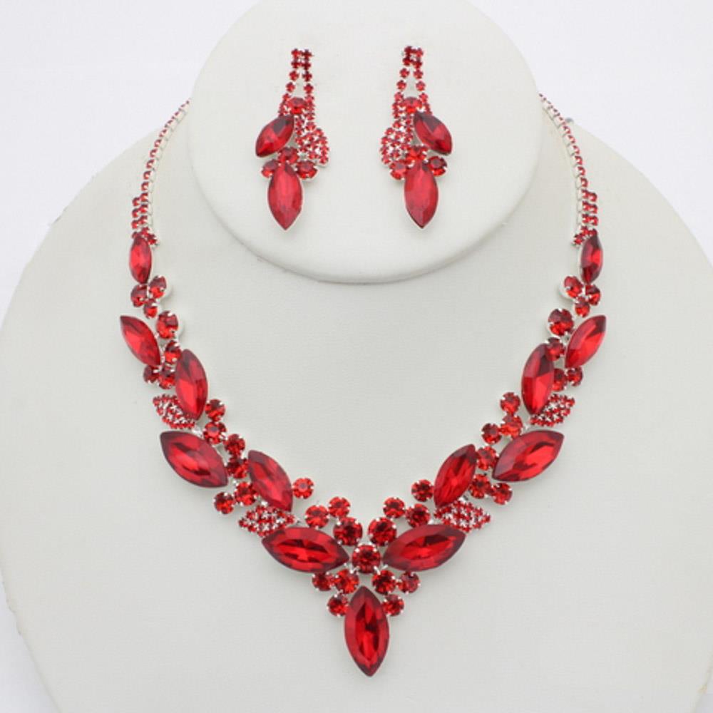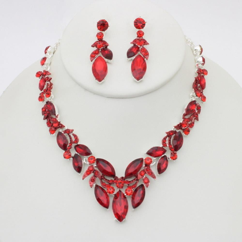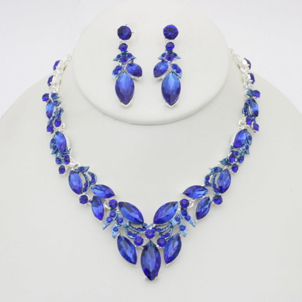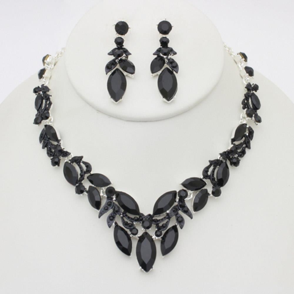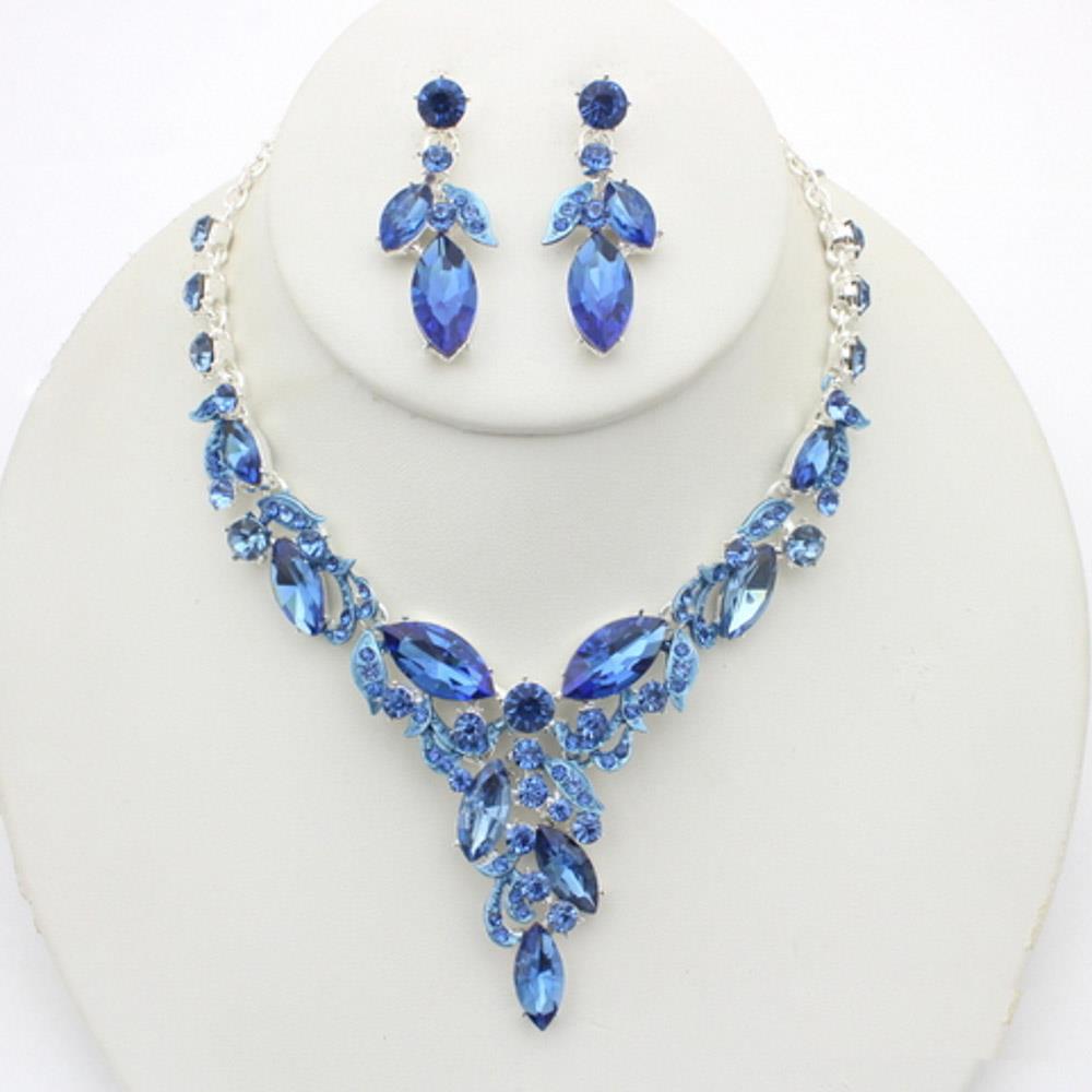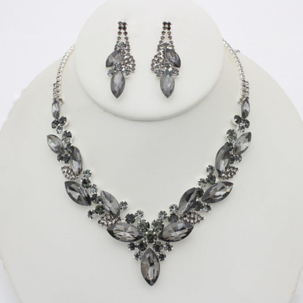 RHINESTONE MARQUISE STATEMENT NECKLACE EARRING SET