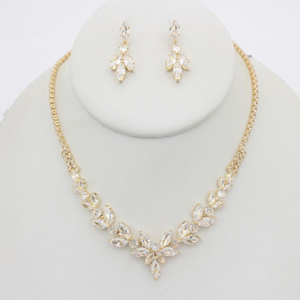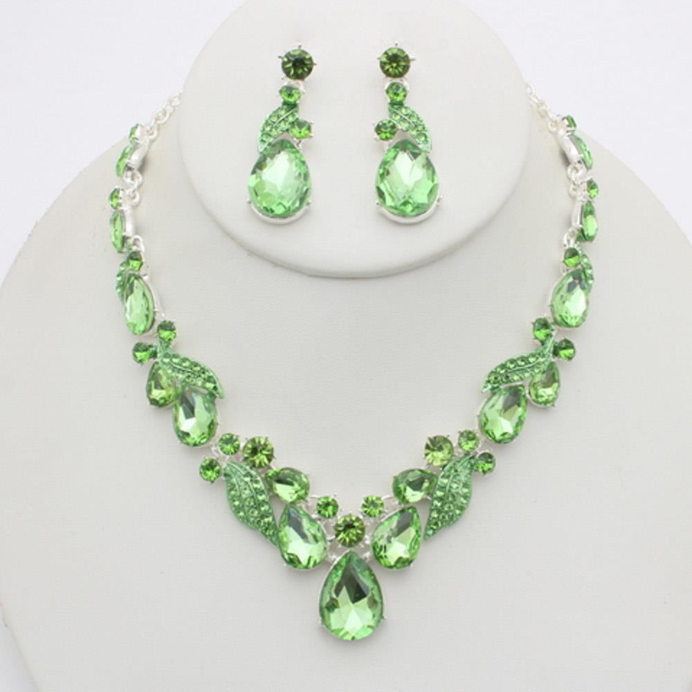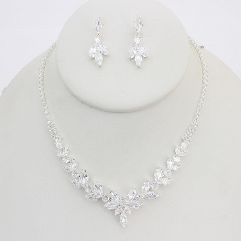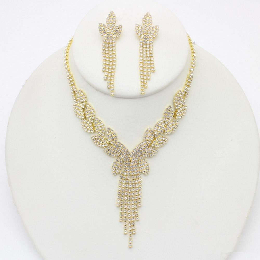 RHINESTONE LEAF CLUSTER NECKLACE EARRING SET