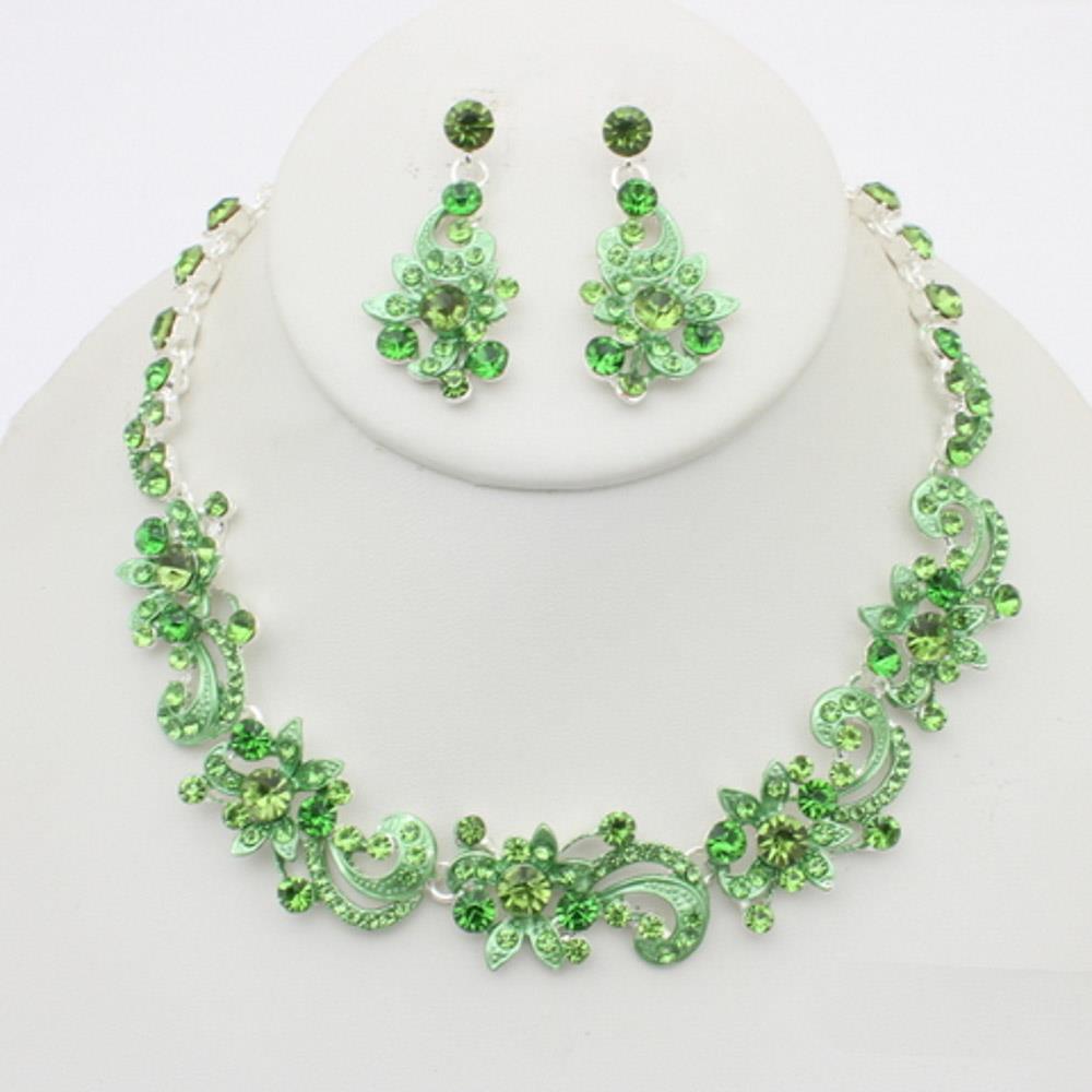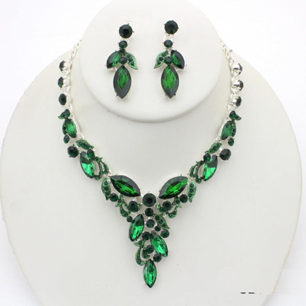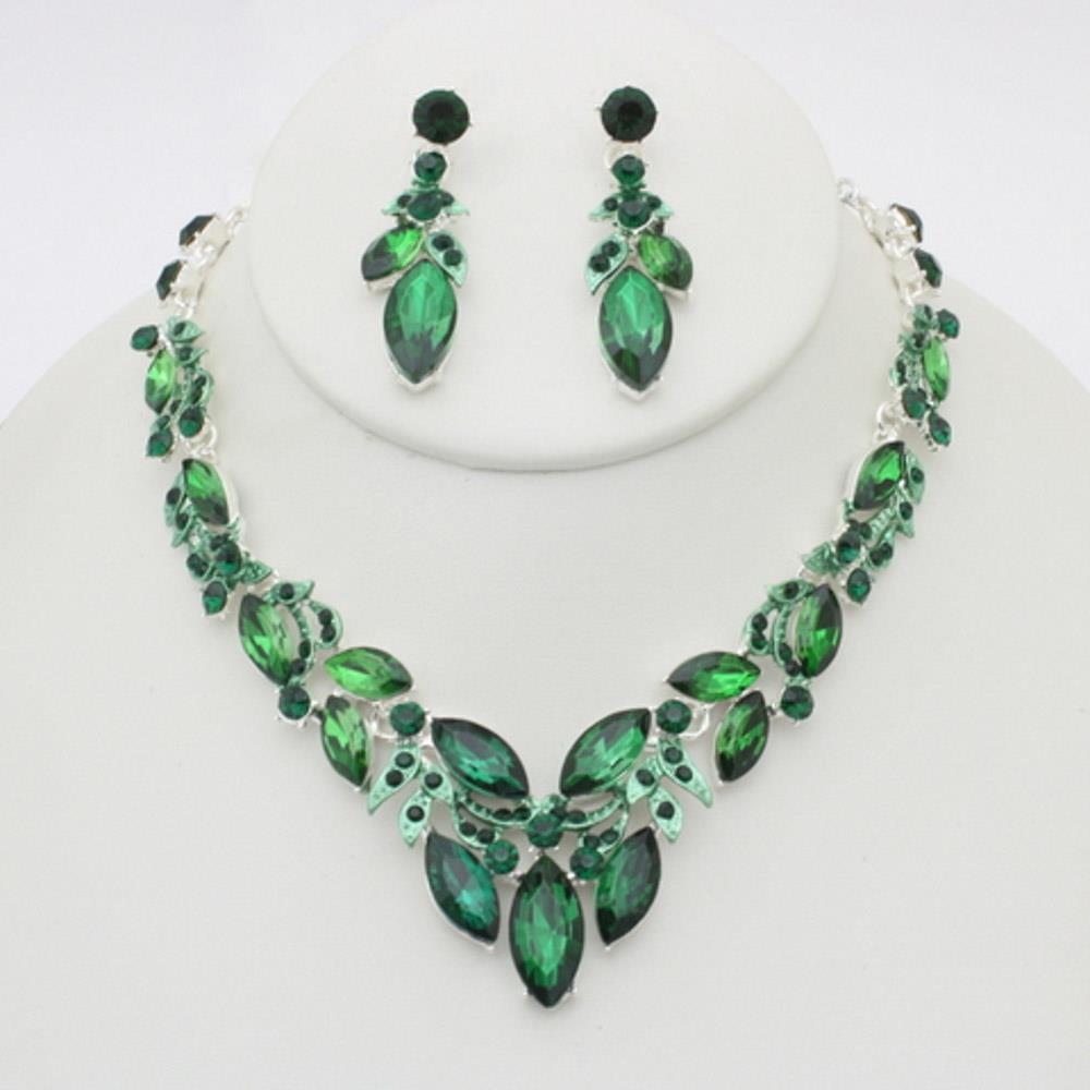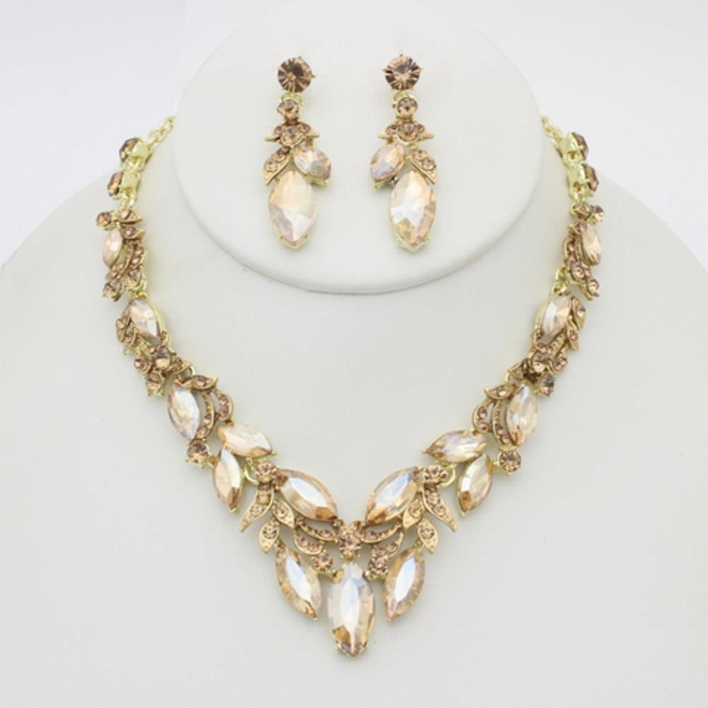 RHINESTONE LEAF CLUSTER NECKLACE EARRING SET