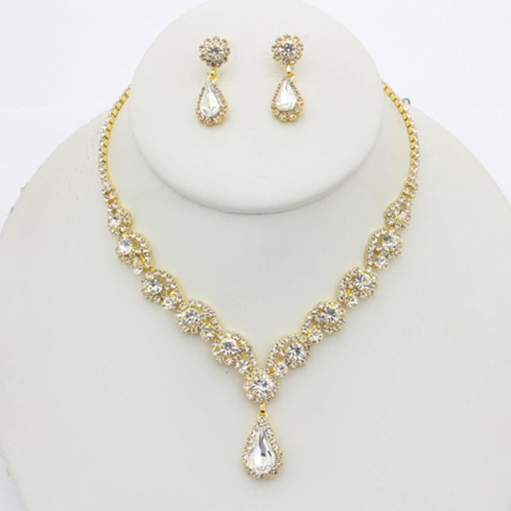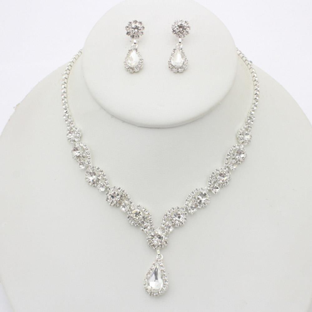 RHINESTONE TEARDROP NECKLACE EARRING SET