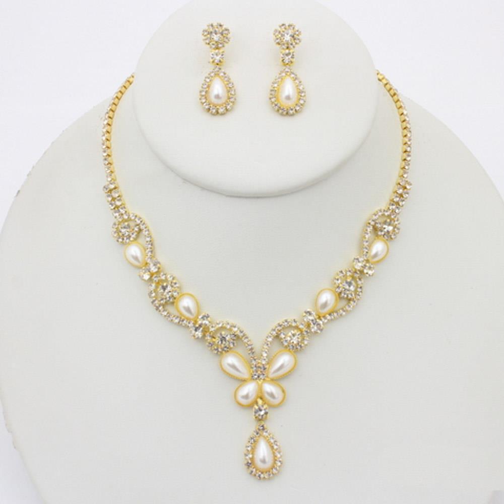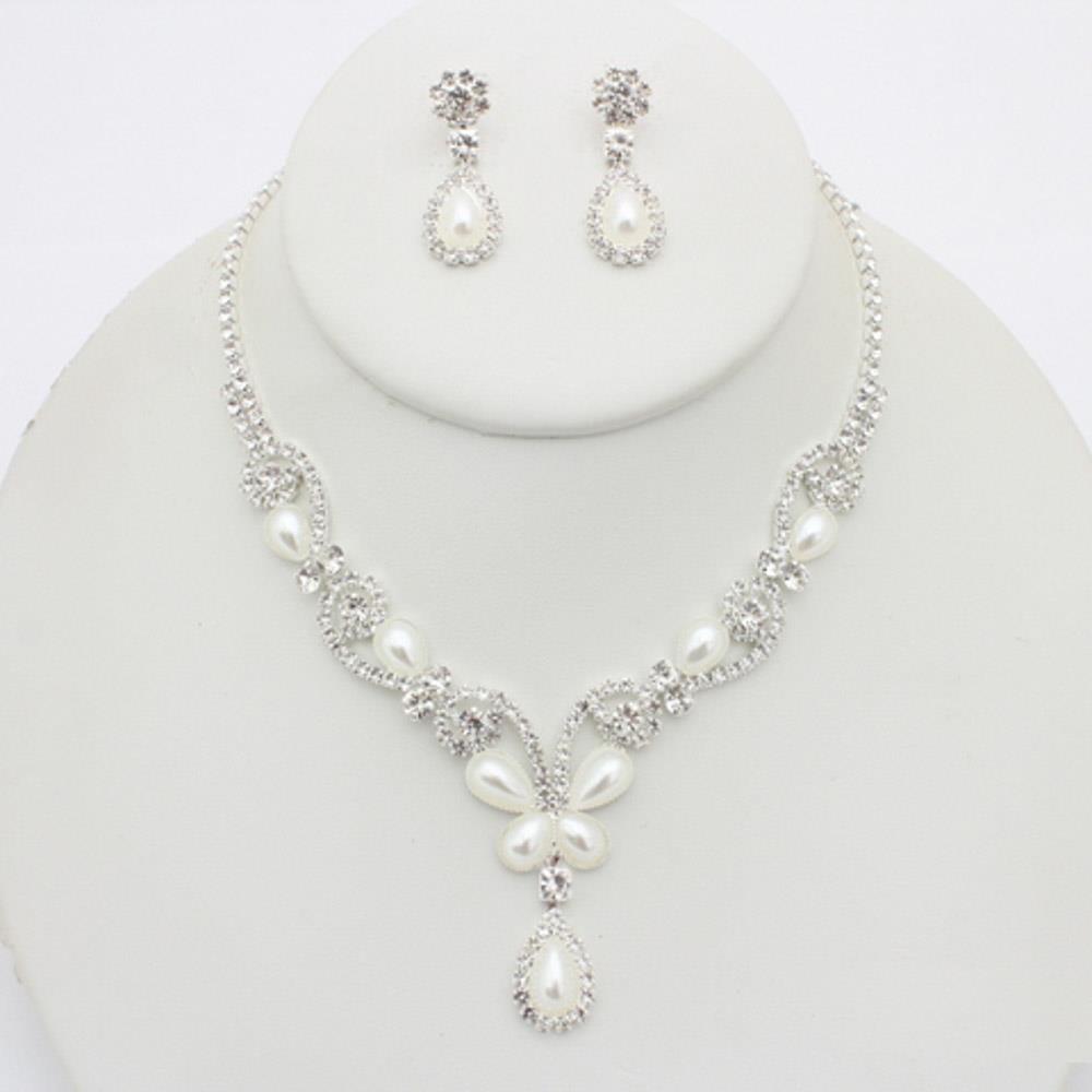 RHINESTONE PEARL ACCENT NECKLACE EARRING SET