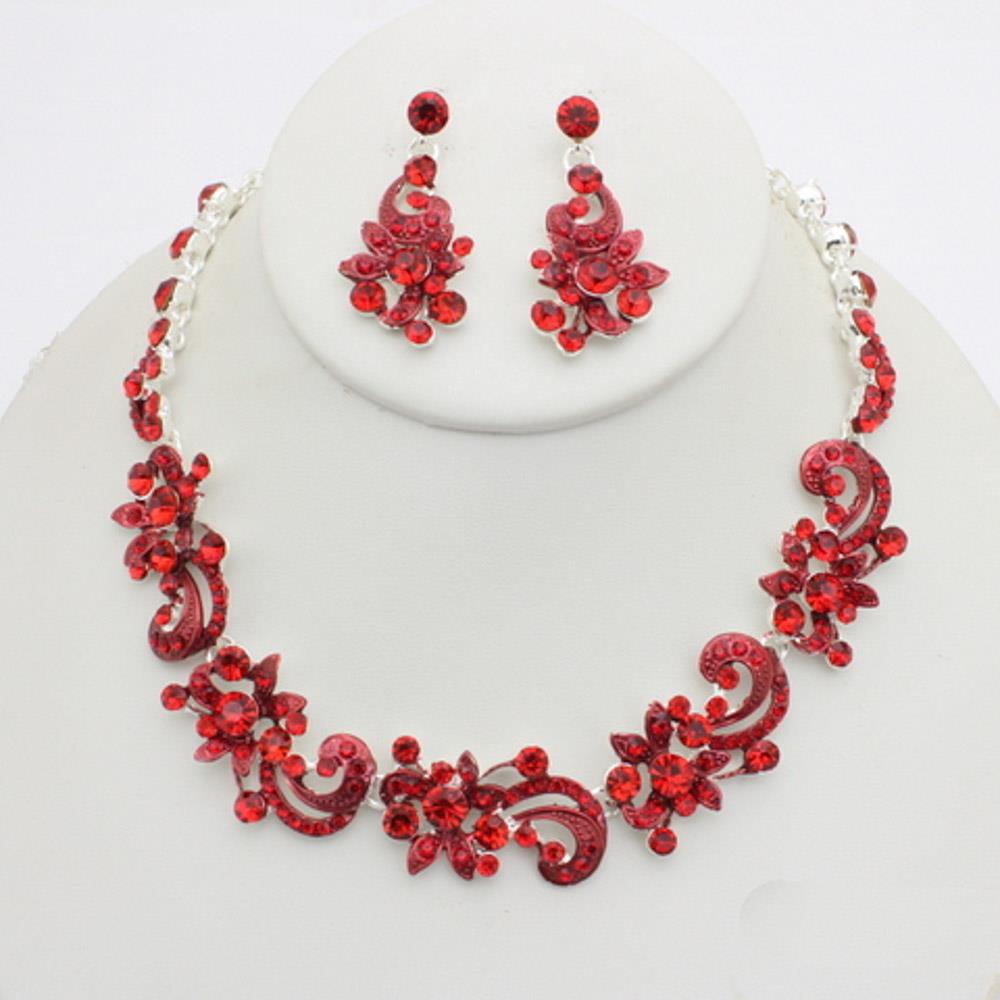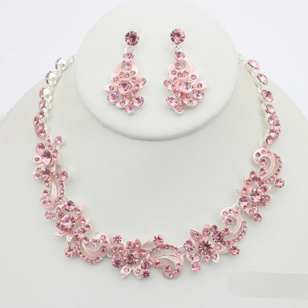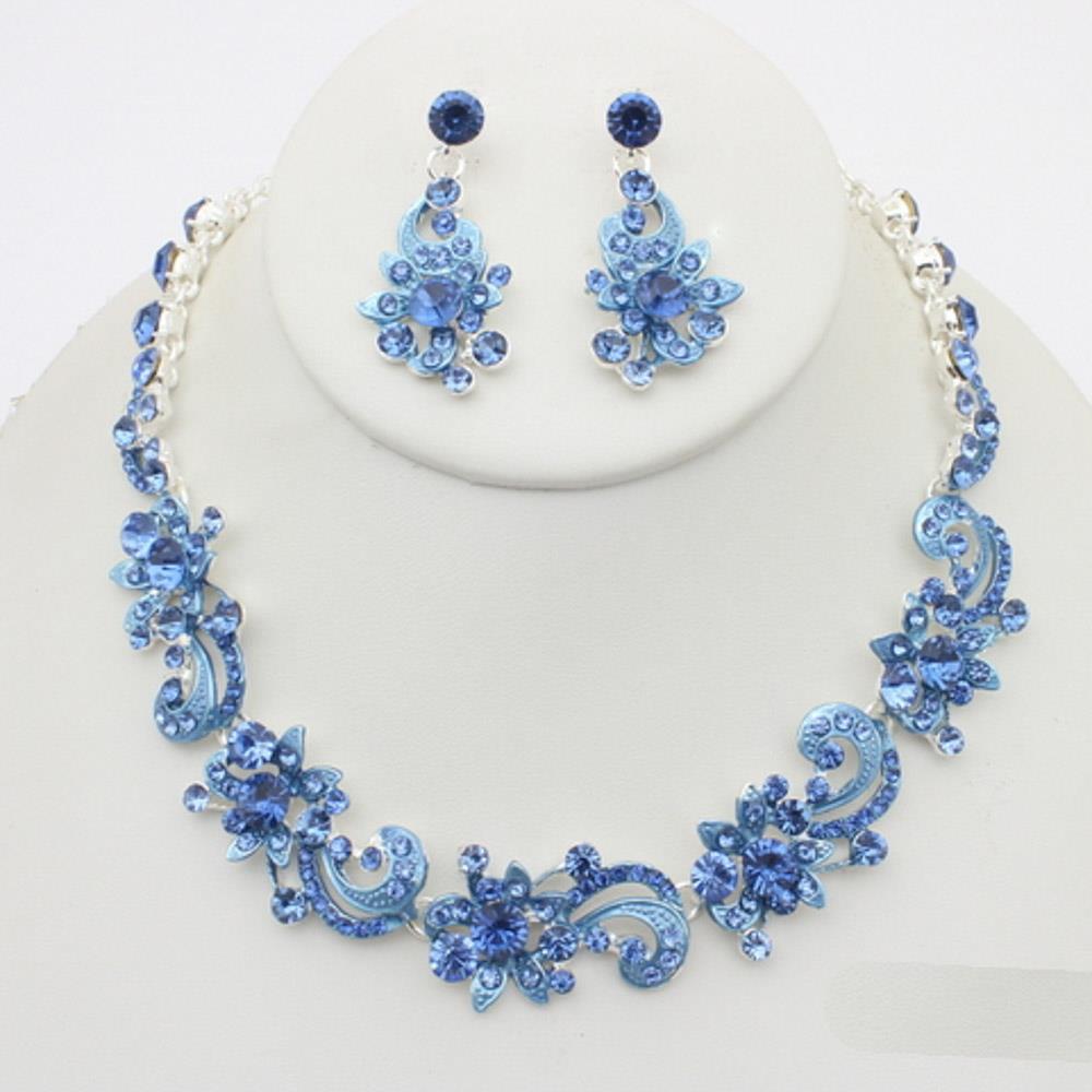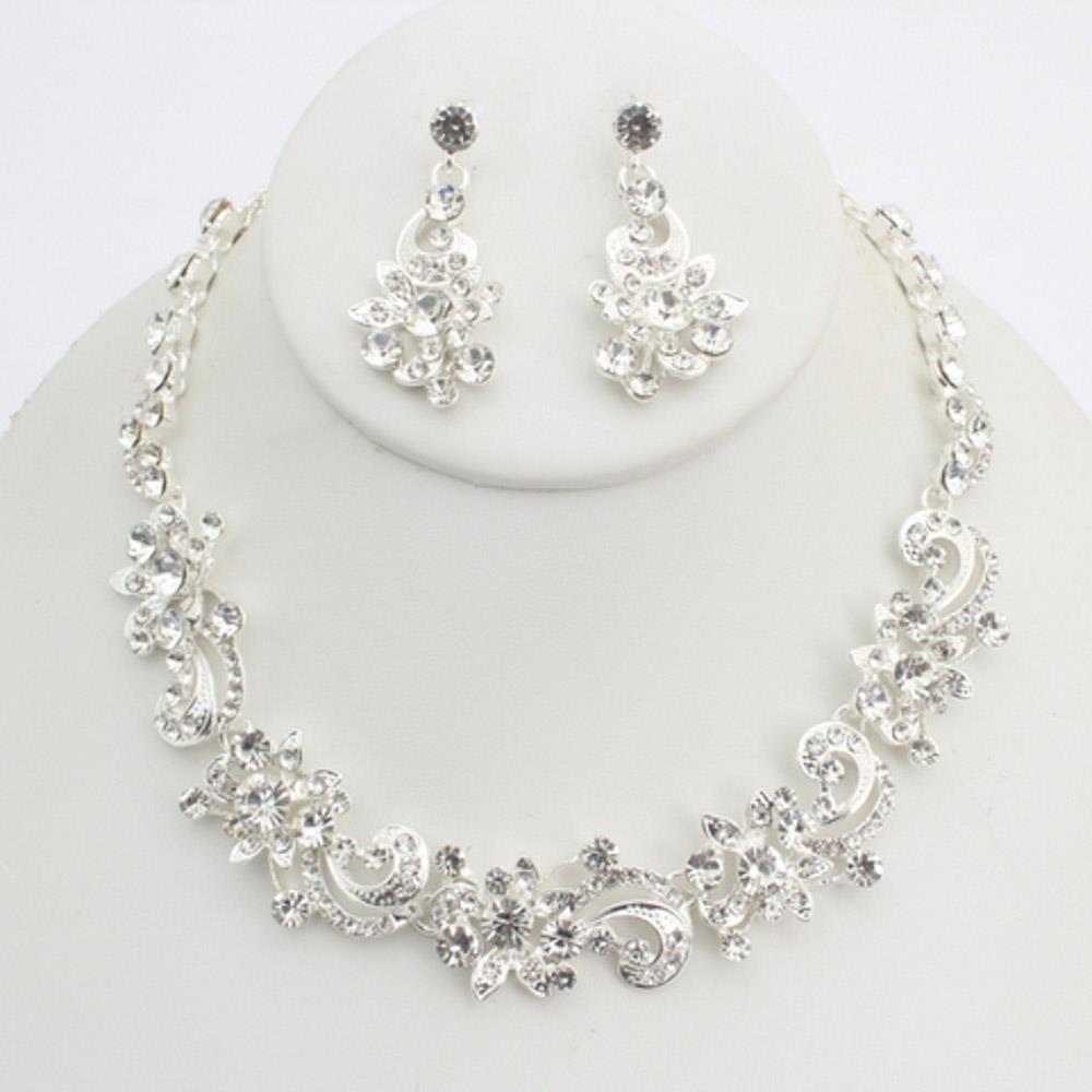 RHINESTONE DELICATE FLORAL NECKLACE EARRING SET