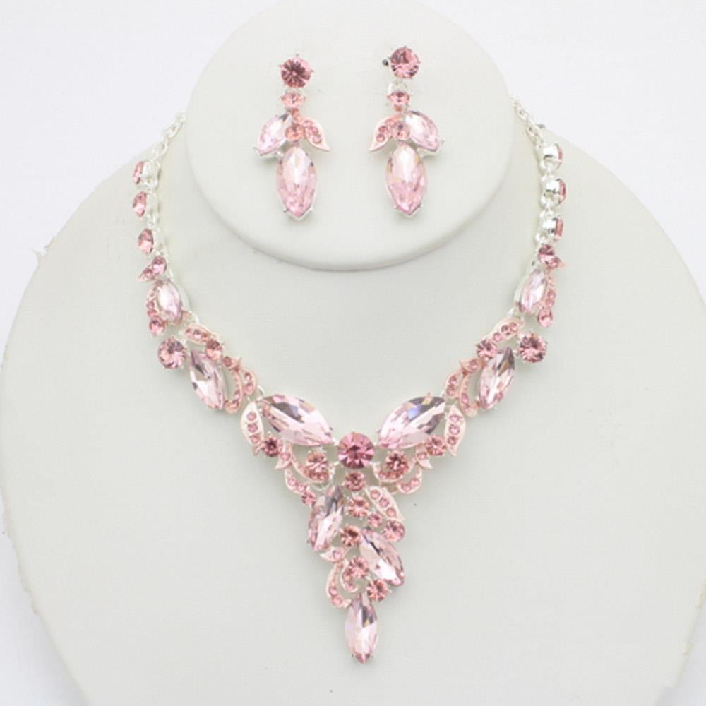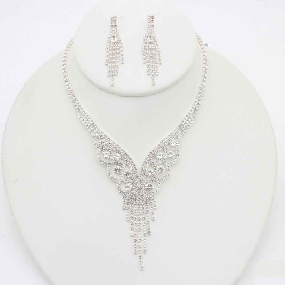RHINESTONE V STYLE NECKLACE EARRING SET