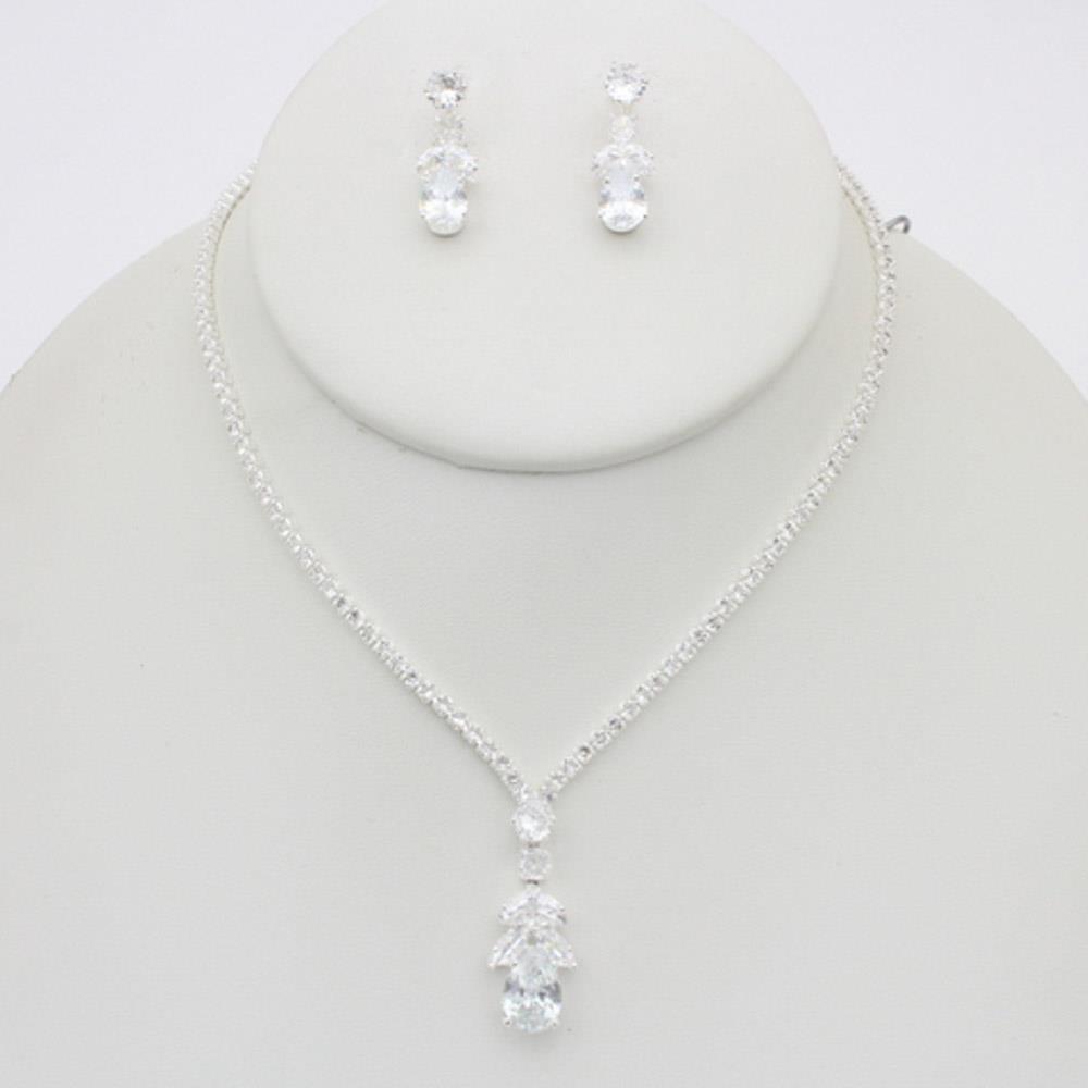 CZ RHINESTONE SOLITAIRE DROP NECKLACE EARRING SET