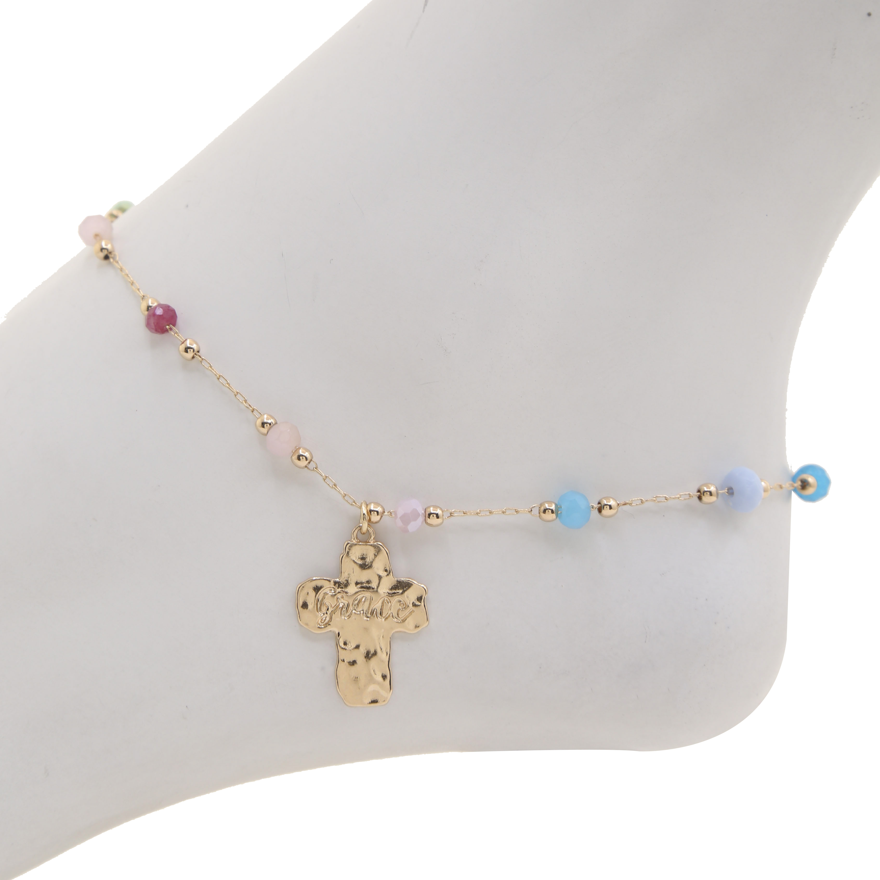 GRACE CROSS CHARM BEADED ANKLET